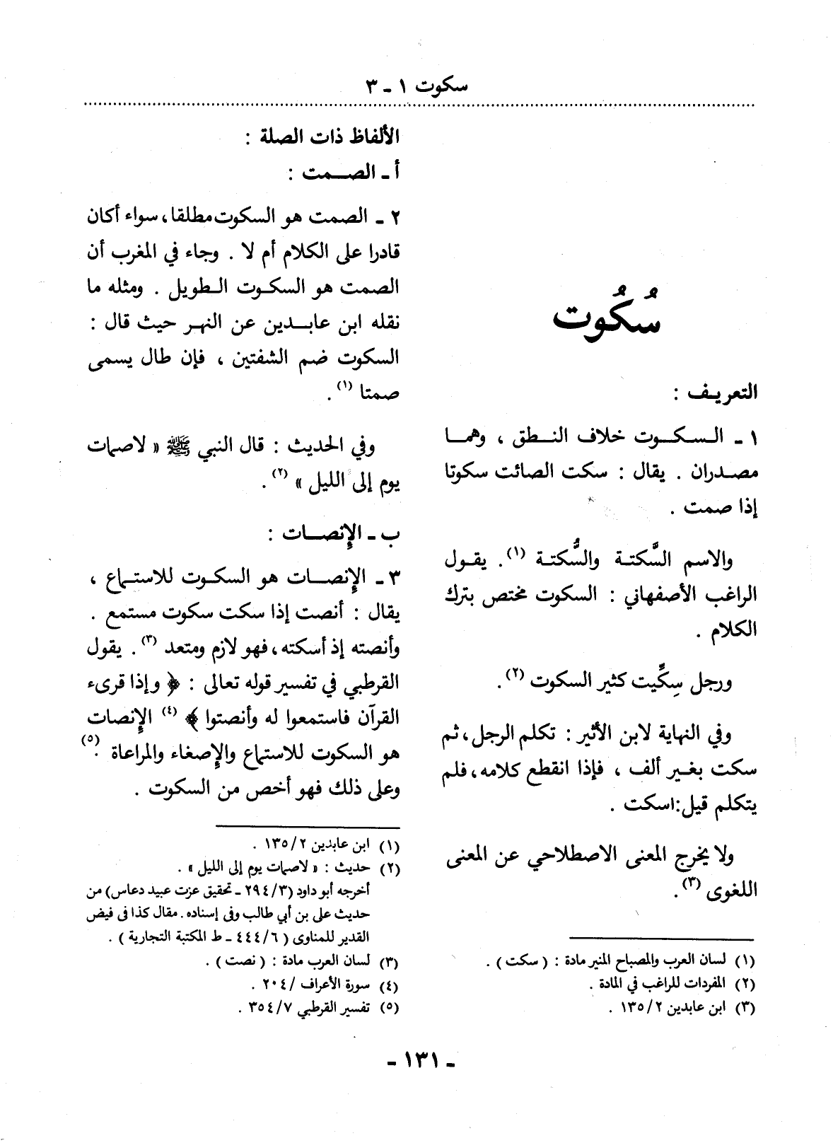 (1) لسان العرب والمصباح المنير مادة: (سكت) .