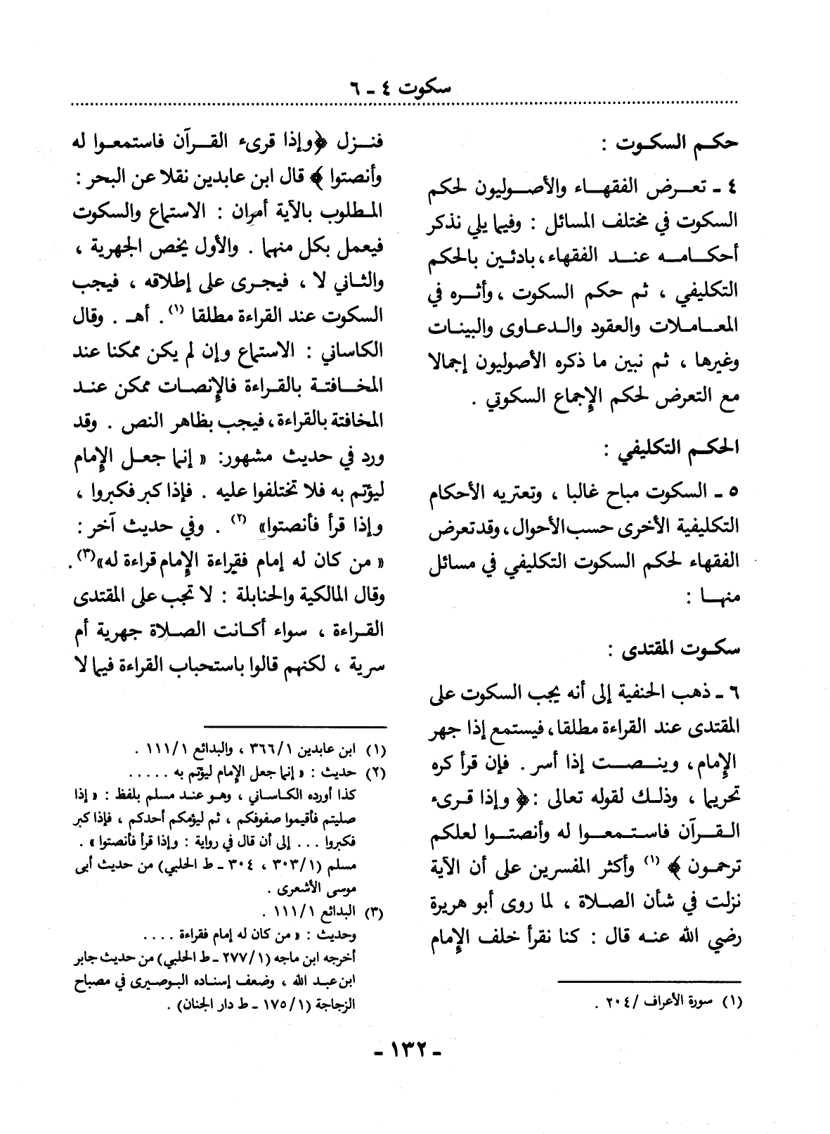 5 - السُّكُوتُ مُبَاحٌ غَالِبًا، وَتَعْتَرِيهِ الأَْحْكَامُ التَّكْلِيفِيَّةُ الأُْخْرَى حَسَبَ الأَْحْوَال، وَقَدْ تَعَرَّضَ الْفُقَهَاءُ لِحُكْمِ السُّكُوتِ التَّكْلِيفِيِّ فِي مَسَائِل، مِنْهَا: