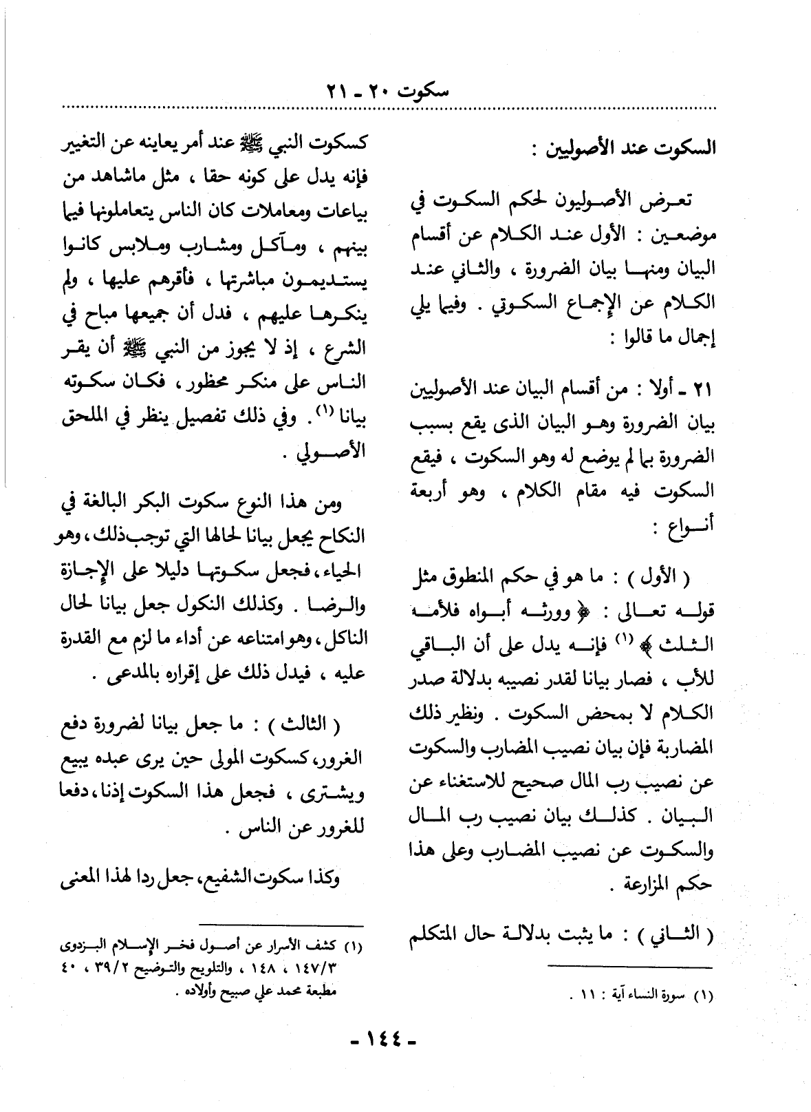 (1) كشف الأسرار عن أصول فخر الإسلام البزدوي 3 / 147، 148، والتلويح والتوضيح 2 / 39، 40 مطبعة محمد علي صبيح وأولاده.