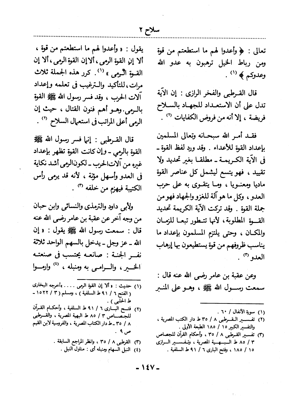 (1) حديث: " ألا إن القوى الرمي. . . ". أخرجه البخاري (الفتح 6 / 91 ط السلفية) ، ومسلم (3 / 1522 - ط الحلبي) .