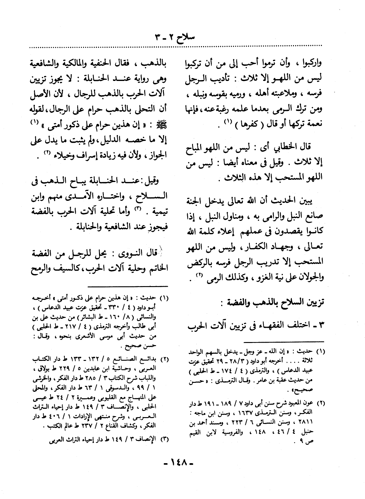 تَزْيِينُ السِّلاَحِ بِالذَّهَبِ وَالْفِضَّةِ: