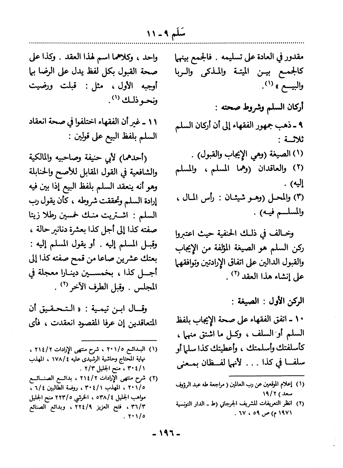 9 - ذَهَبَ جُمْهُورُ الْفُقَهَاءِ إِلَى أَنَّ أَرْكَانَ السَّلَمِ ثَلاَثَةٌ: