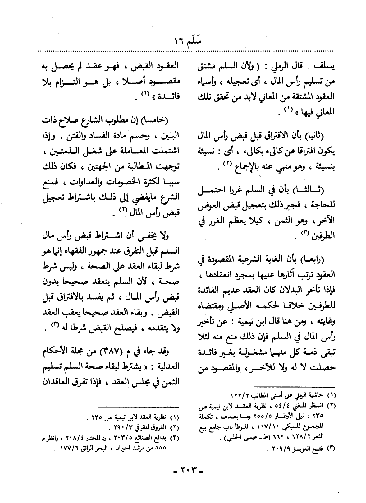 وَقَدْ جَاءَ فِي م (387) مِنْ مَجَلَّةِ الأَْحْكَامِ الْعَدْلِيَّةِ: " يُشْتَرَطُ لِبَقَاءِ صِحَّةِ السَّلَمِ تَسْلِيمُ الثَّمَنِ فِي مَجْلِسِ الْعَقْدِ، فَإِذَا تَفَرَّقَ الْعَاقِدَانِ