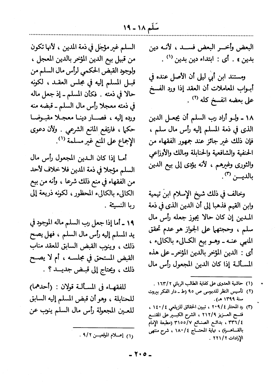18 - وَلَوْ أَرَادَ رَبُّ السَّلَمِ أَنْ يَجْعَل الدَّيْنَ الَّذِي فِي ذِمَّةِ الْمُسْلَمِ إِلَيْهِ رَأْسَ مَال سَلَمٍ، فَإِنَّ ذَلِكَ غَيْرُ جَائِزٍ عِنْدَ جُمْهُورِ الْفُقَهَاءِ مِنَ الْحَنَفِيَّةِ وَالشَّافِعِيَّةِ وَالْحَنَابِلَةِ وَمَالِكٍ وَالأَْوْزَاعِيِّ وَالثَّوْرِيِّ وَغَيْرِهِمْ، لأَِنَّهُ يُؤَدِّي إِلَى بَيْعِ الدَّيْنِ بِالدَّيْنِ (3) .