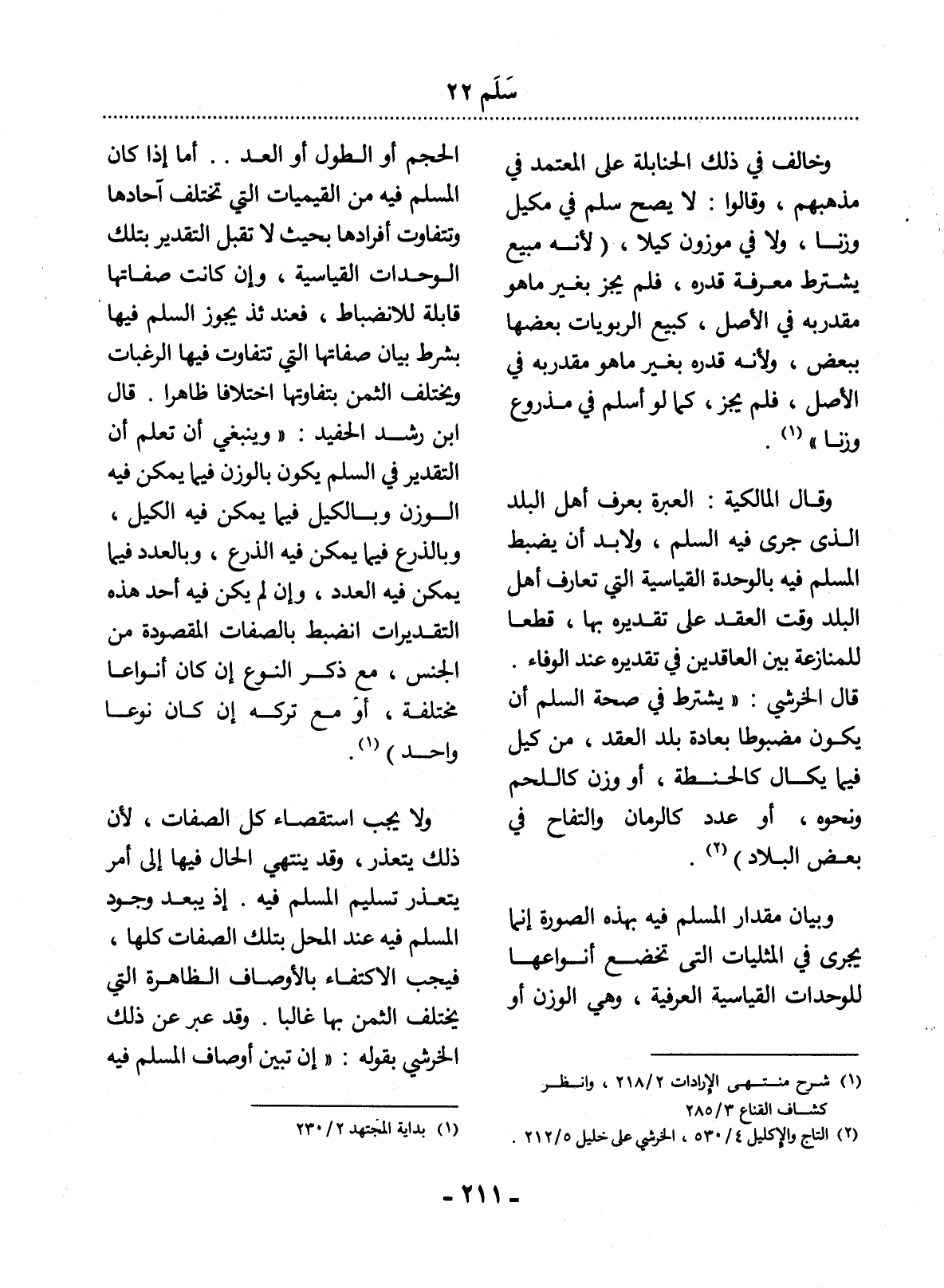 (2) التاج والإكليل 4 / 530، الخرشي على خليل 5 / 212.