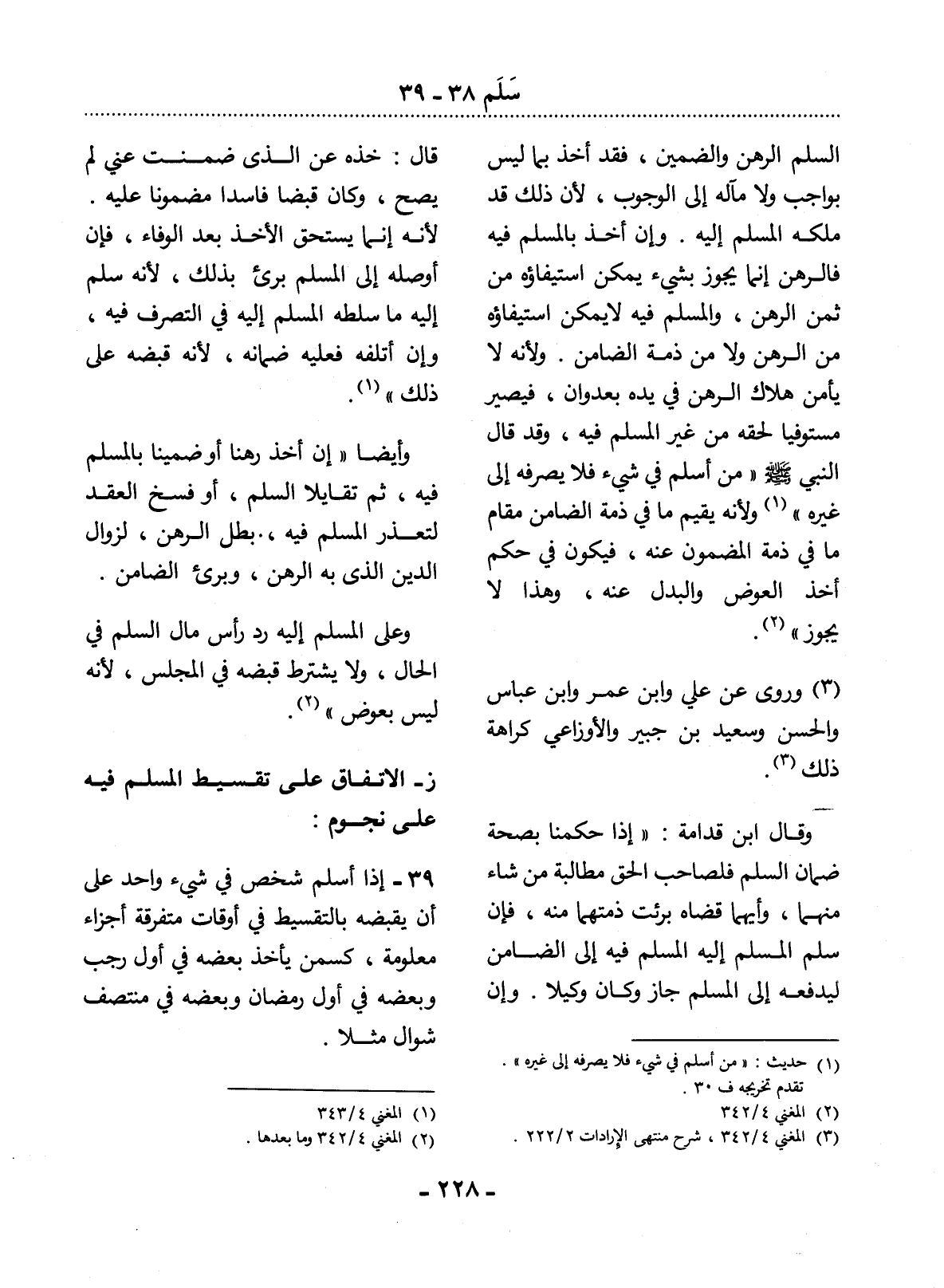 39 - إِذَا أَسْلَمَ شَخْصٌ فِي شَيْءٍ وَاحِدٍ عَلَى أَنْ يَقْبِضَهُ بِالتَّقْسِيطِ فِي أَوْقَاتٍ مُتَفَرِّقَةٍ أَجْزَاءً مَعْلُومَةً، كَسَمْنٍ يَأْخُذُ بَعْضَهُ فِي أَوَّل رَجَبٍ وَبَعْضَهُ فِي أَوَّل رَمَضَانَ وَبَعْضَهُ فِي مُنْتَصَفِ شَوَّالٍ مَثَلاً.