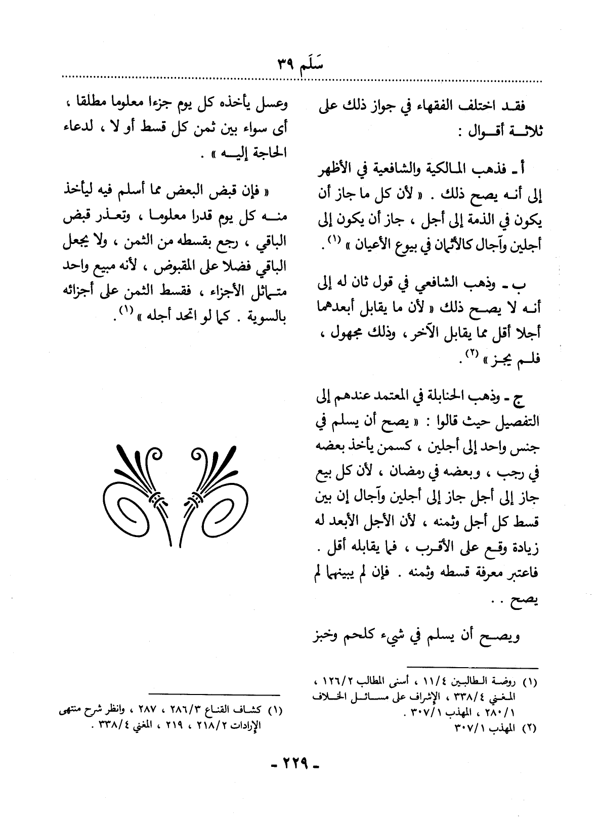 (1) روضة الطالبين 4 / 11، أسنى المطالب 2 / 126، المغني 4 / 338، الإشراف على مسائل الخلاف 1 / 280، المهذب1 / 307.