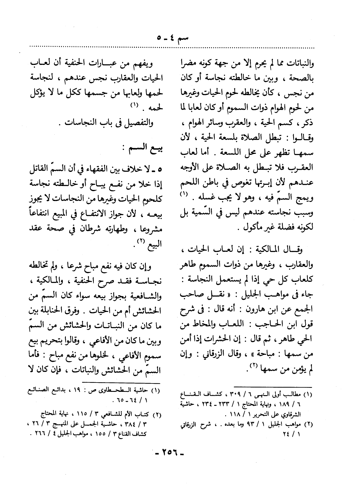 5 - لاَ خِلاَفَ بَيْنَ الْفُقَهَاءِ فِي أَنَّ السُّمَّ الْقَاتِل إِذَا خَلاَ مِنْ نَفْعٍ يُبَاحُ أَوْ خَالَطَتْهُ نَجَاسَةٌ كَلُحُومِ الْحَيَّاتِ وَغَيْرِهَا مِنَ النَّجَاسَاتِ لاَ يَجُوزُ بَيْعُهُ؛ لأَِنَّ جَوَازَ الاِنْتِفَاعِ فِي الْمَبِيعِ انْتِفَاعًا مَشْرُوعًا، وَطَهَارَتُهُ شَرْطَانِ فِي صِحَّةِ عَقْدِ الْبَيْعِ (2) .