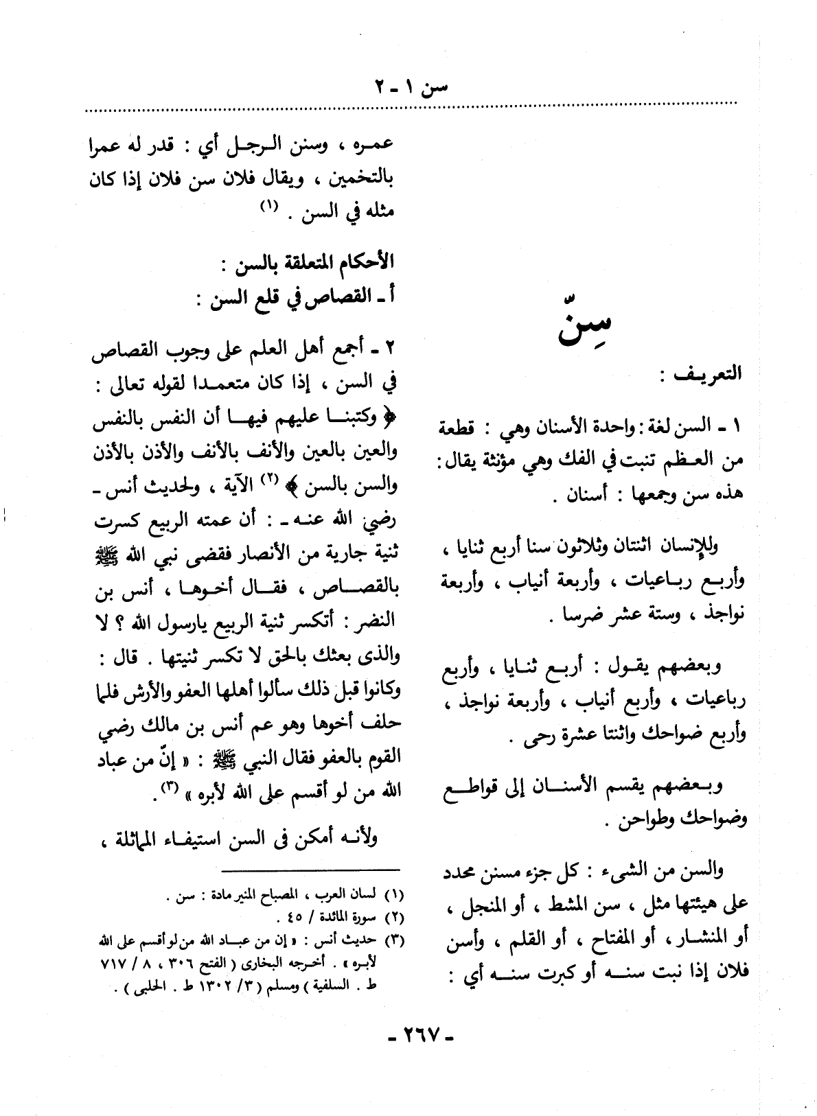 (1) لسان العرب، المصباح المنير مادة: سن.