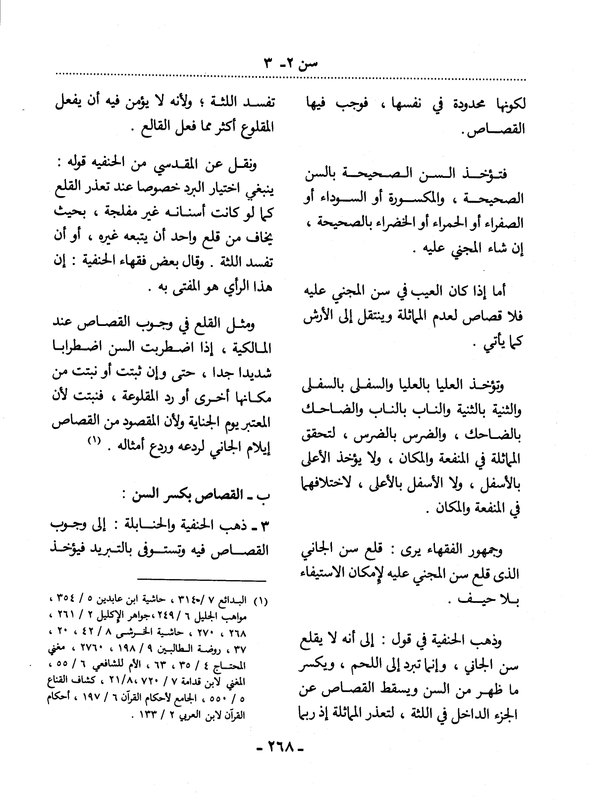 ب - الْقِصَاصُ بِكَسْرِ السِّنِّ: