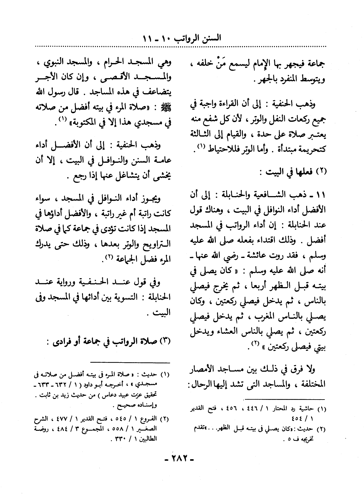 (3) صَلاَةُ الرَّوَاتِبِ فِي جَمَاعَةٍ أَوْ فُرَادَى: