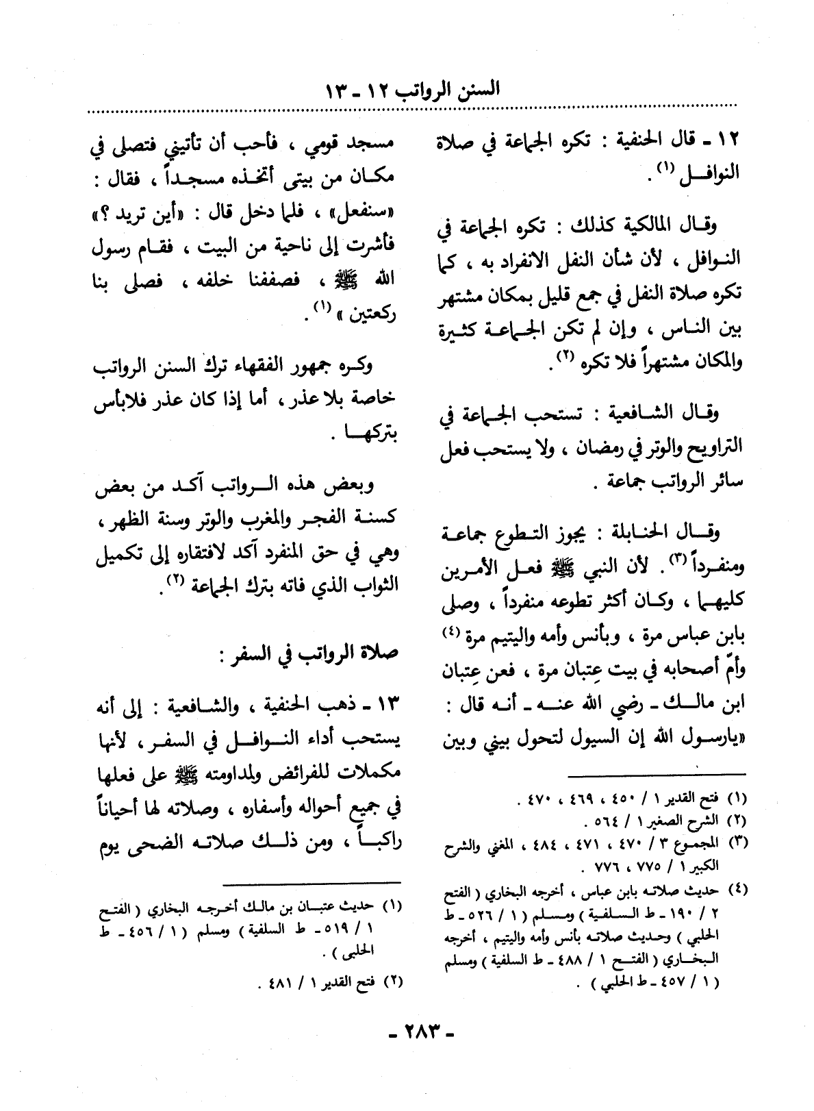 صَلاَةُ الرَّوَاتِبِ فِي السَّفَرِ: