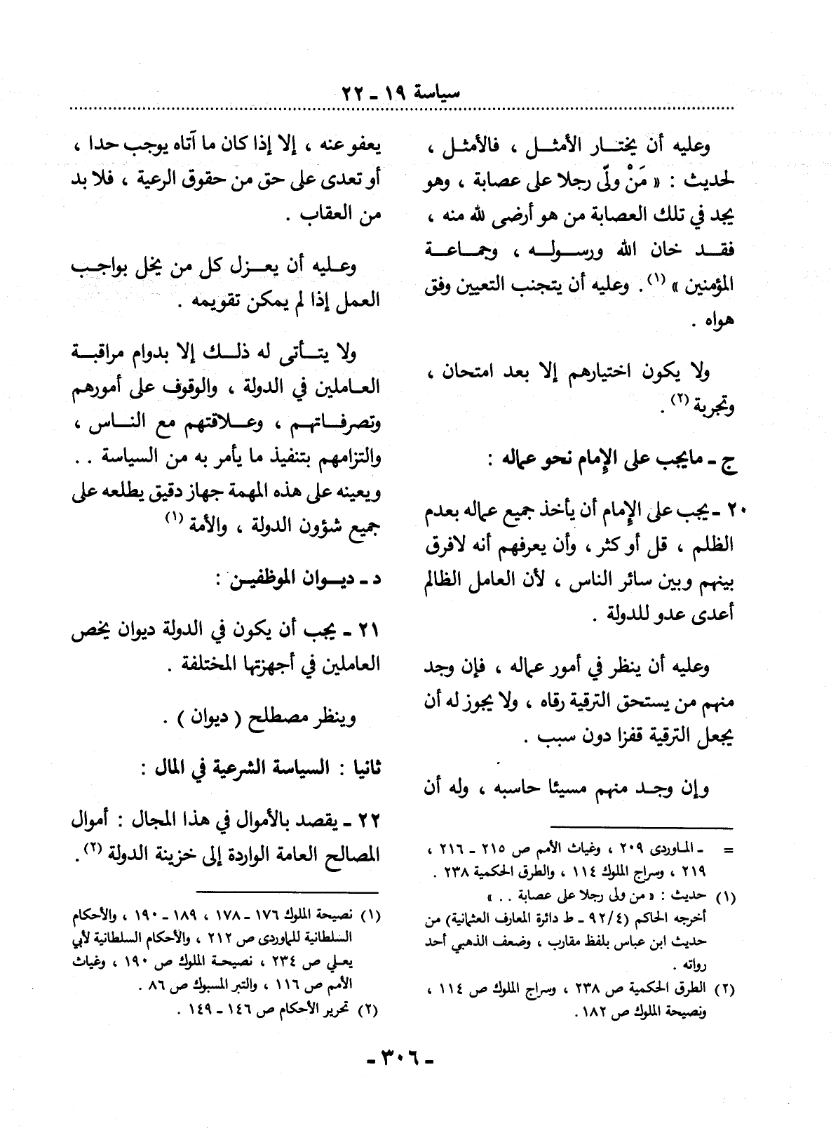 (1) نصيحة الملوك 176 - 178، 189 - 190، والأحكام السلطانية للماوردي ص 212، والأحكام السلطانية لأبي يعلى ص 234، نصيحة الملوك ص 190، وغياث الأمم ص 116، والتبر المسبوك ص 86.