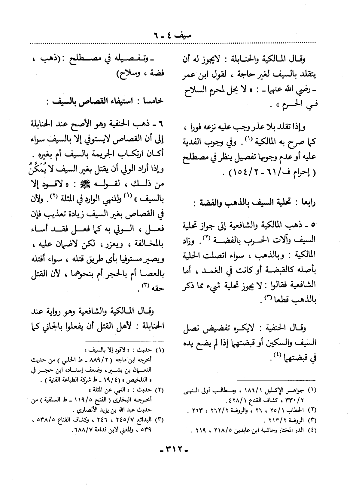 (1) حديث: " لا قود إلا بالسيف ". أخرجه ابن ماجه (2 / 889 - ط الحلبي) من حديث النعمان بن بشير، وضعف إسناده ابن حجر في " التلخيص " (4 / 19 - ط شركة الطباعة الفنية) .