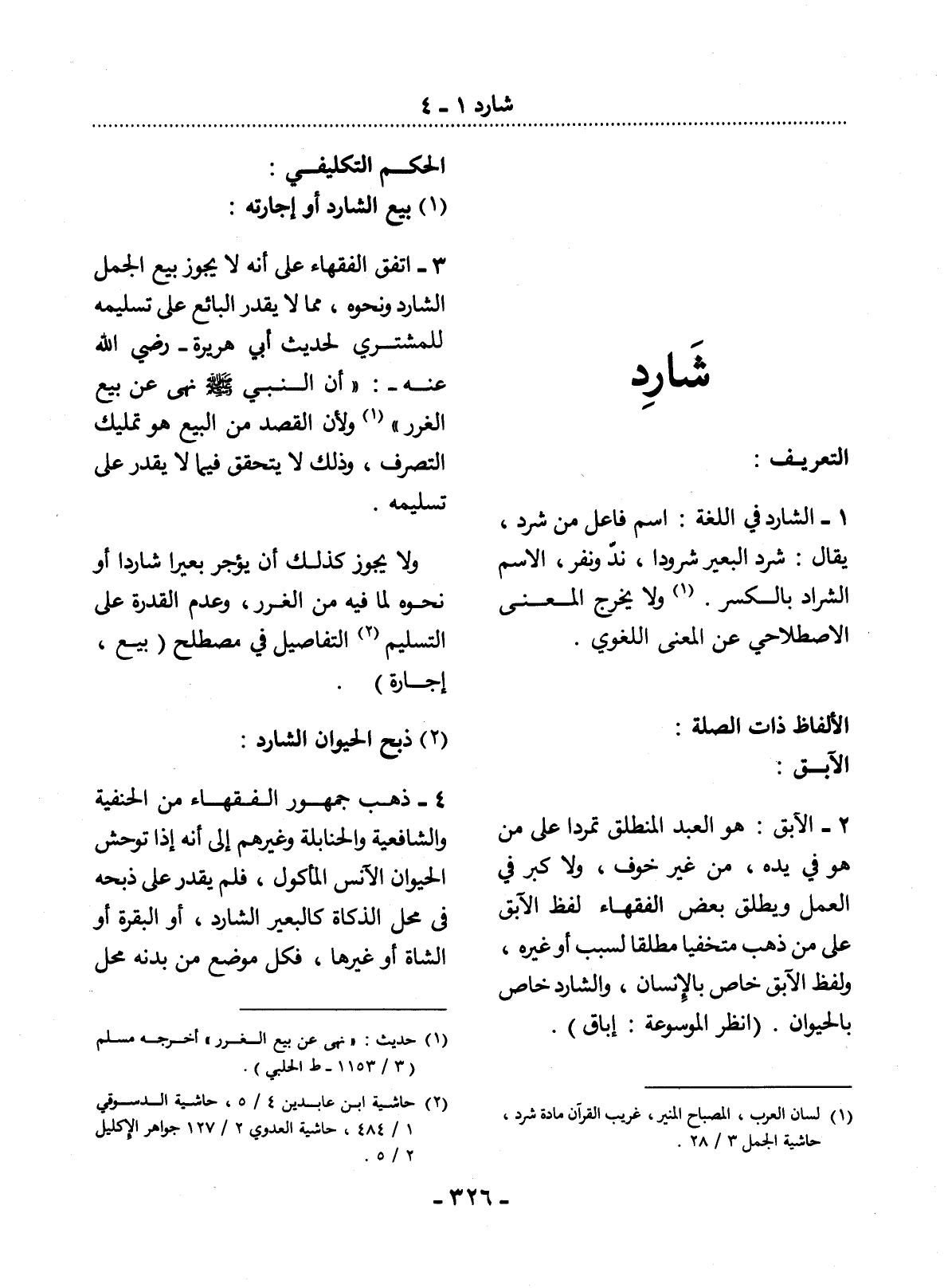 (1) لسان العرب، المصباح المنير، غريب القرآن مادة شرد، حاشية الجمل 3 / 28.
