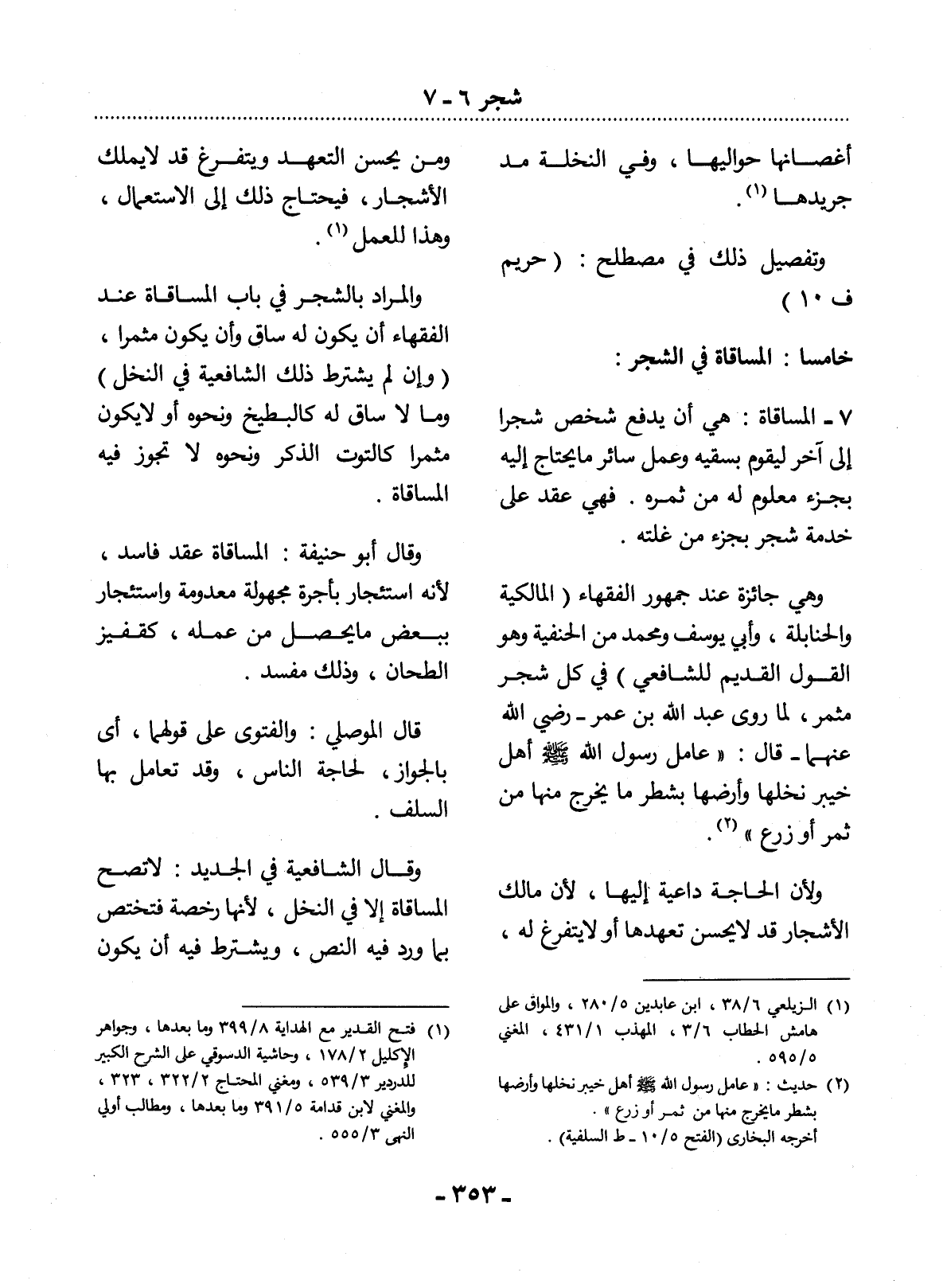 خَامِسًا: الْمُسَاقَاةُ فِي الشَّجَرِ: