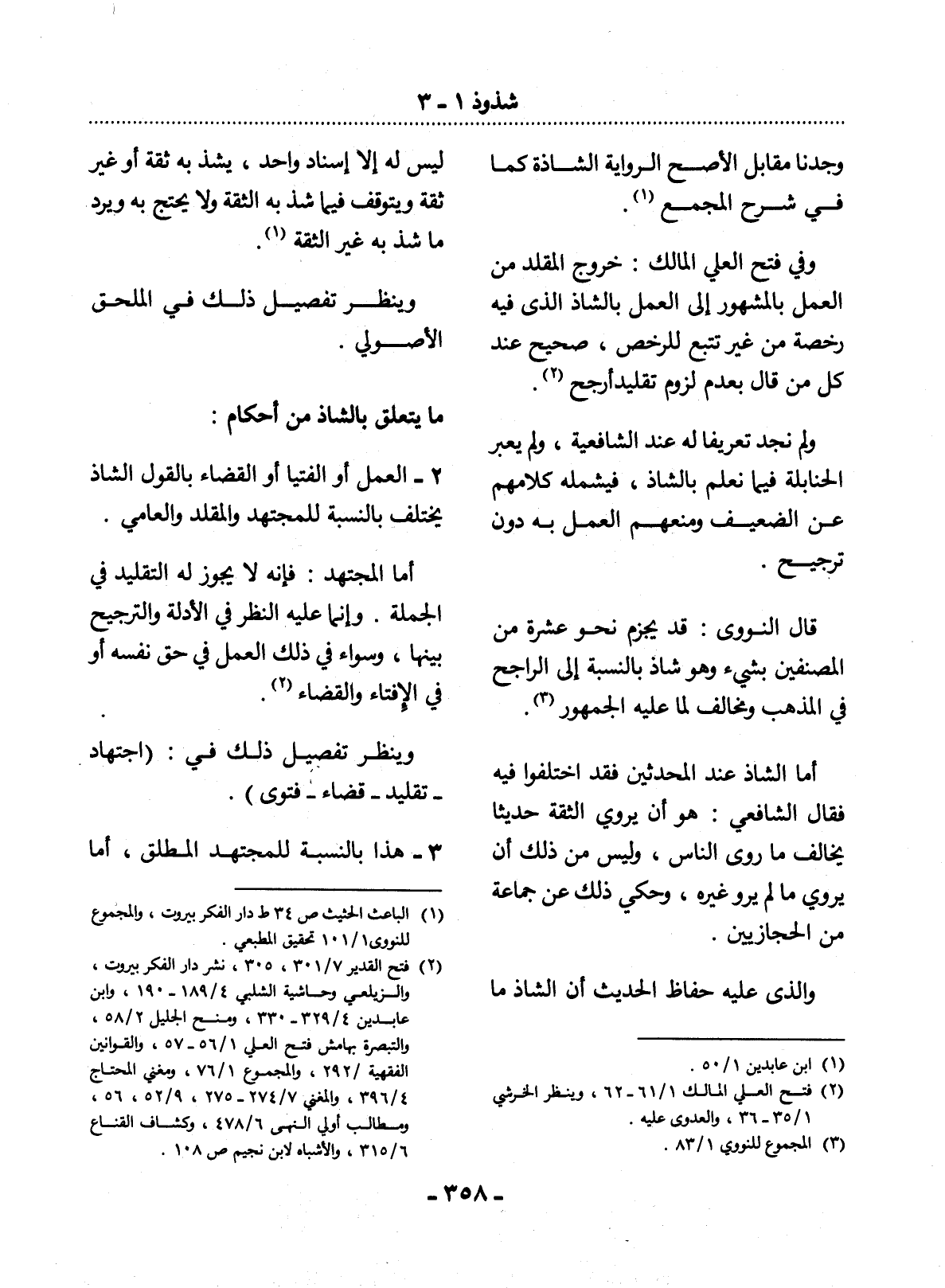 مَا يَتَعَلَّقُ بِالشَّاذِّ مِنْ أَحْكَامٍ: