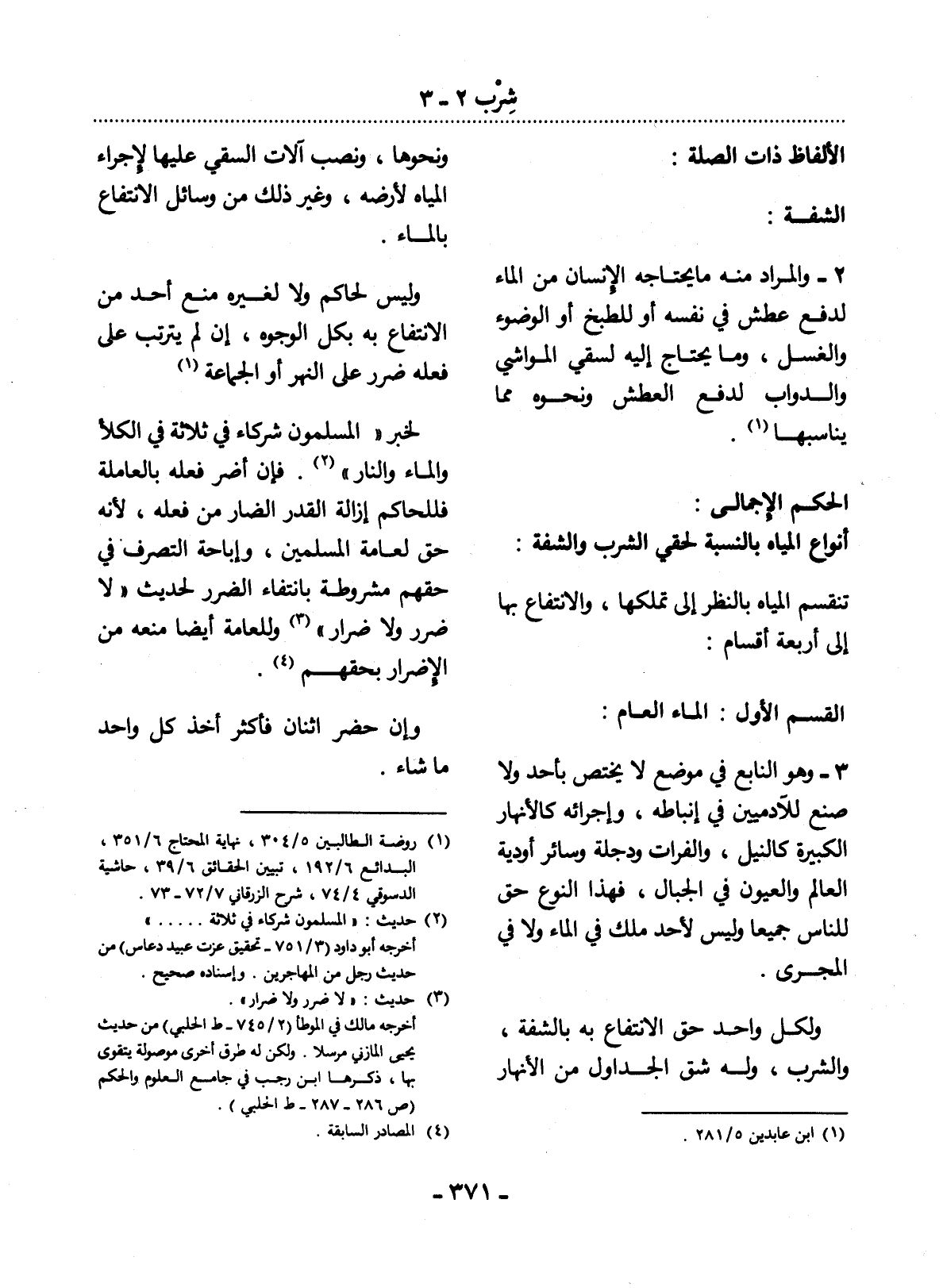 الْقِسْمُ الأَْوَّل: الْمَاءُ الْعَامُّ: