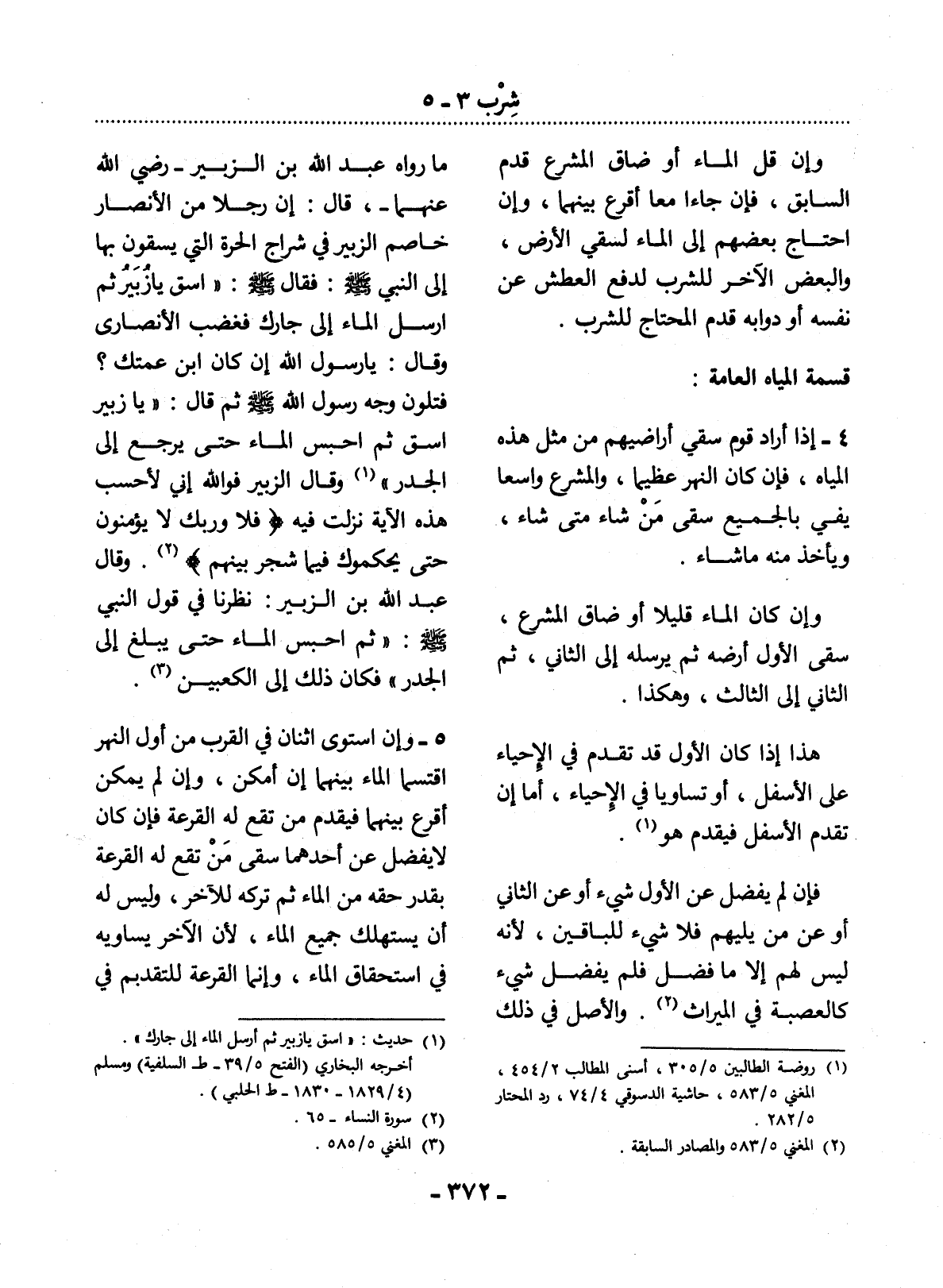 (1) حديث: " اسق يا زبير ثم أرسل الماء إلى جارك ". أخرجه البخاري (الفتح 5 / 39 - ط السلفية) ومسلم (4 / 1829 - 1830 - ط الحلبي) .