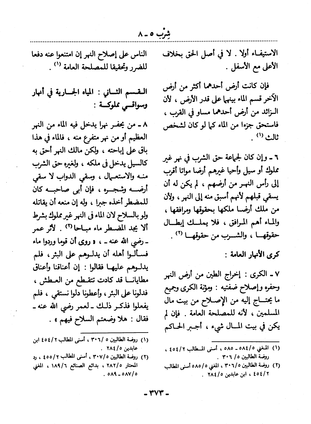 الْقِسْمُ الثَّانِي: الْمِيَاهُ الْجَارِيَةُ فِي أَنْهَارٍ وَسَوَاقِي مَمْلُوكَةٍ: