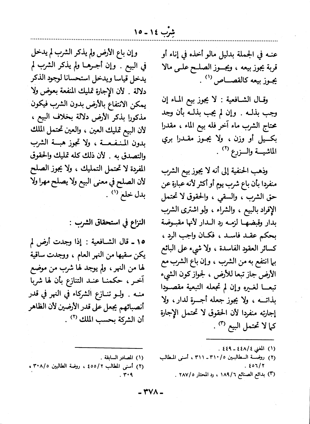 15 - قَال الشَّافِعِيَّةُ: إِذَا وُجِدَتْ أَرْضٌ لَمْ يَكُنْ سَقْيُهَا مِنَ النَّهْرِ الْعَامِّ، وَوُجِدَتْ سَاقِيَةٌ لَهَا مِنَ النَّهْرِ، وَلَمْ يُوجَدْ لَهَا شِرْبٌ مِنْ مَوْضِعٍ آخَرَ، حَكَمْنَا عِنْدَ التَّنَازُعِ بِأَنَّ لَهَا شِرْبًا مِنْهُ. وَلَوْ تَنَازَعَ الشُّرَكَاءُ فِي النَّهْرِ فِي قَدْرِ أَنْصِبَائِهِمْ يُجْعَل عَلَى قَدْرِ الأَْرْضِينَ لأَِنَّ الظَّاهِرَ أَنَّ الشَّرِكَةَ بِحَسَبِ الْمِلْكِ.
