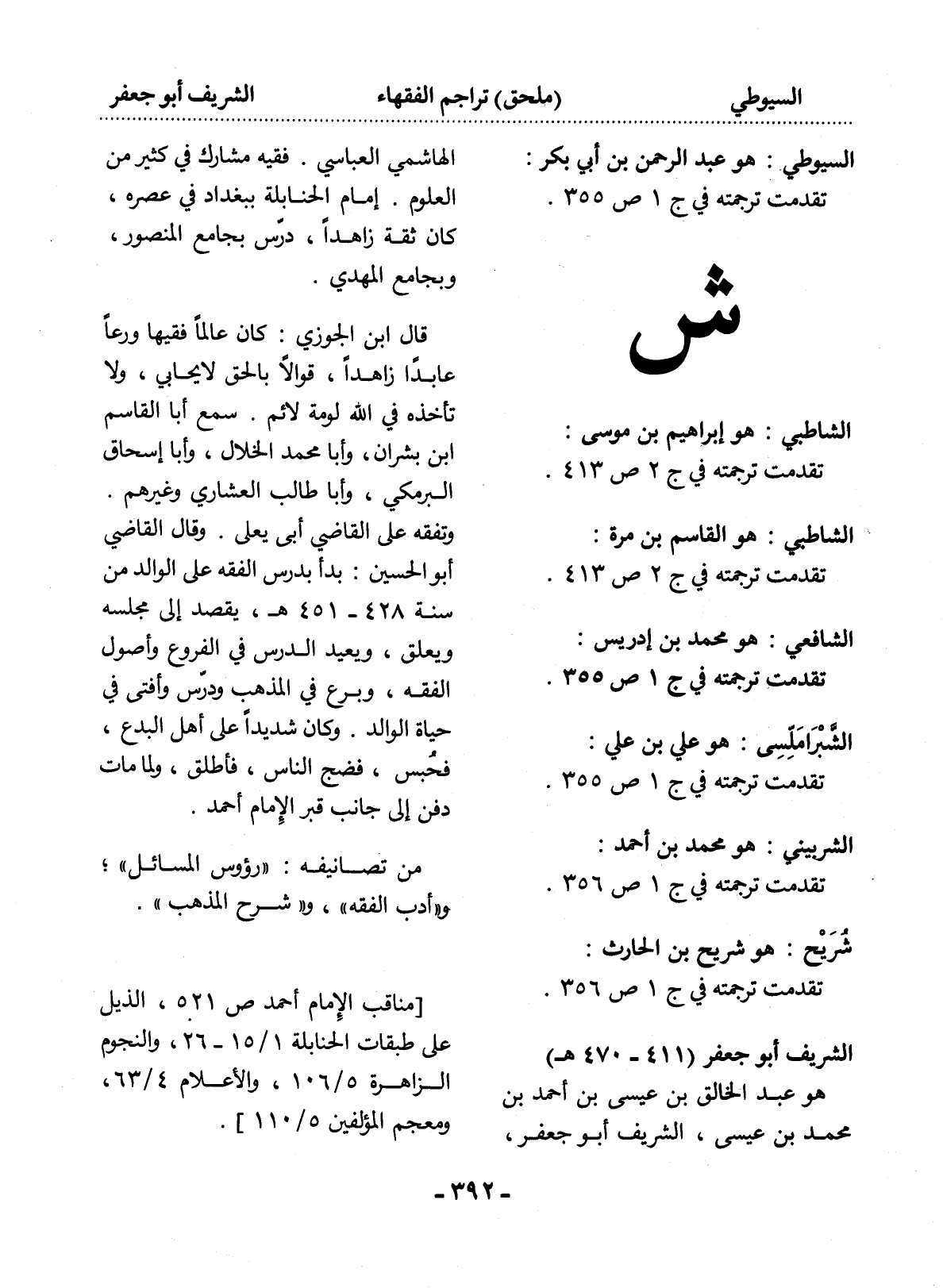 الهاشمي العباسي. فقيه مشارك في كثير من العلوم. إمام الحنابلة ببغداد في عصره، كان ثقة زاهدا، درس بجامع المنصور، وبجامع المهدي. قال ابن الجوزي: كان عالما فقيها ورعا عابدا زاهدا، قوالا بالحق لا يحابي، ولا تأخذه في الله لومة لائم. سمع أبا القاسم بن بشران، وأبا محمد الخلال، وأبا إسحاق البرمكي، وأبا طالب العشاري وغيرهم. وتفقه على القاضي أبي يعلى. وقال القاضي أبو الحسين: بدأ بدرس الفقه على الوالد من سنة 428 - 451 هـ، يقصد إلى مجلسه ويعلق، ويعيد الدرس في الفروع وأصول الفقه، وبرع في المذهب ودرس وأفتى في حياة الوالد. وكان شديدا على أهل البدع، فحبس، فضج الناس، فأطلق، ولما مات دفن إلى جانب قبر الإمام أحمد. من تصانيفه: " رؤوس المسائل "؛ و " أدب الفقه "، و " شرح المذهب ". [مناقب الإمام أحمد ص 521، الذيل على طبقات الحنابلة 1 / 15 - 26، والنجوم الزاهرة 5 / 106، والأعلام 4 / 63، ومعظم المؤلفين 5 / 110] .