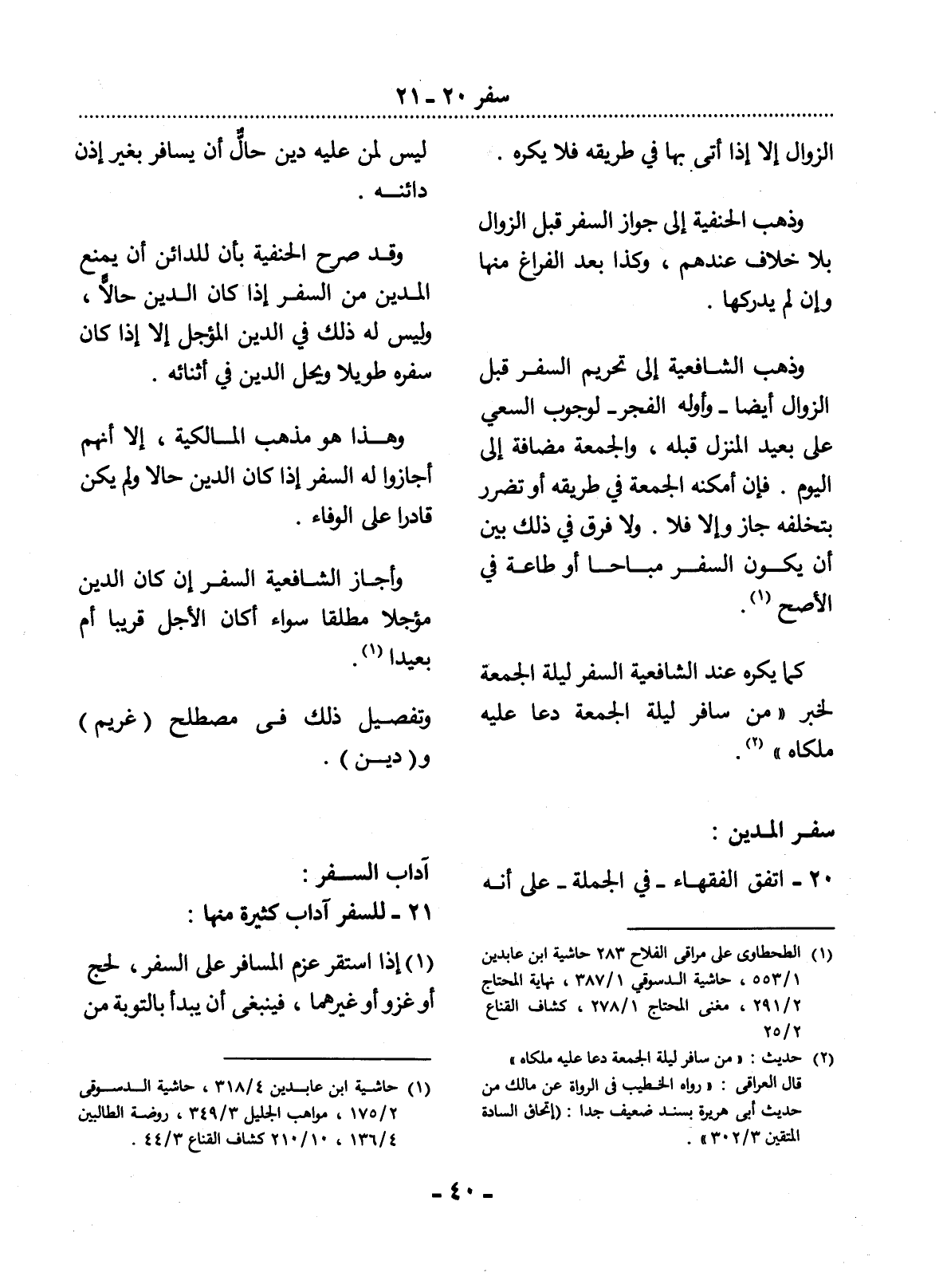 لَيْسَ لِمَنْ عَلَيْهِ دَيْنٌ حَالٌّ أَنْ يُسَافِرَ بِغَيْرِ إِذْنِ دَائِنِهِ.
