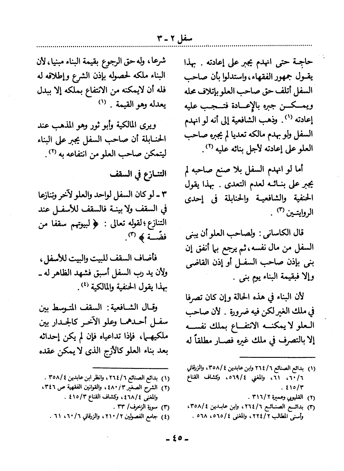 3 - لَوْ كَانَ السُّفْل لِوَاحِدٍ وَالْعُلْوُ لآِخَرَ وَتَنَازَعَا فِي السَّقْفِ وَلاَ بَيِّنَةَ فَالسَّقْفُ لِلأَْسْفَل عِنْدَ التَّنَازُعِ؛ لِقَوْلِهِ تَعَالَى: {لِبُيُوتِهِمْ سُقُفًا مِنْ فِضَّةٍ} (3) .