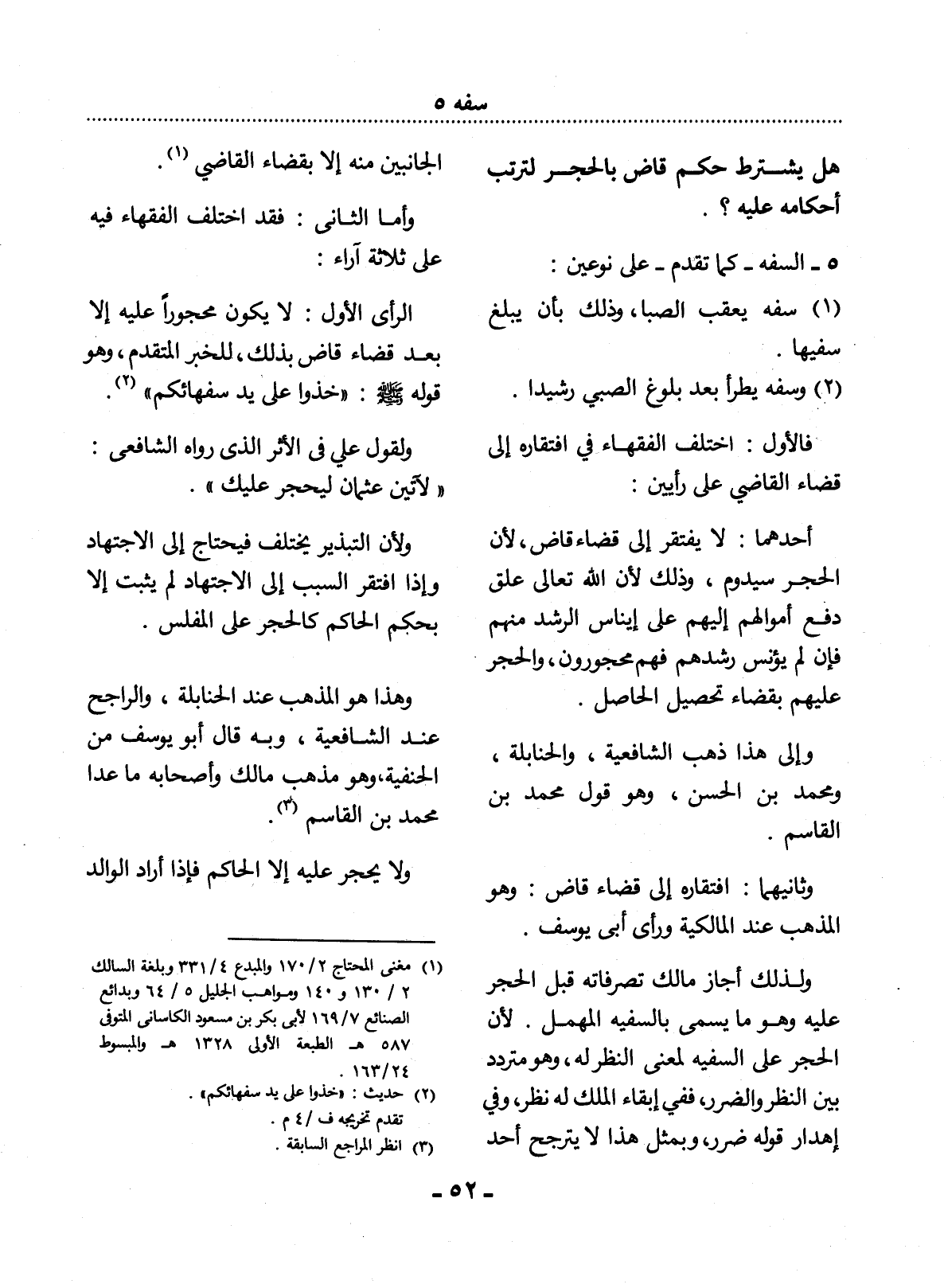 (1) مغني المحتاج 2 / 170 والمبدع 4 / 331 وبلغة السالك 2 / 130 و140 ومواهب الجليل 5 / 64 وبدائع الصنائع 7 / 169 لأبي بكر بن مسعود الكاساني المتوفى 587 هـ الطبعة الأولى 1328 هـ والمبسوط 24 / 163.
