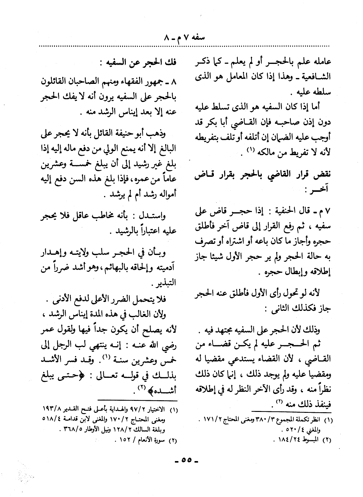 8 - جُمْهُورُ الْفُقَهَاءِ وَمِنْهُمُ الصَّاحِبَانِ الْقَائِلُونَ بِالْحَجْرِ عَلَى السَّفِيهِ يَرَوْنَ أَنَّهُ لاَ يُفَكُّ الْحَجْرُ عَنْهُ إِلاَّ بَعْدَ إِينَاسِ الرُّشْدِ مِنْهُ.