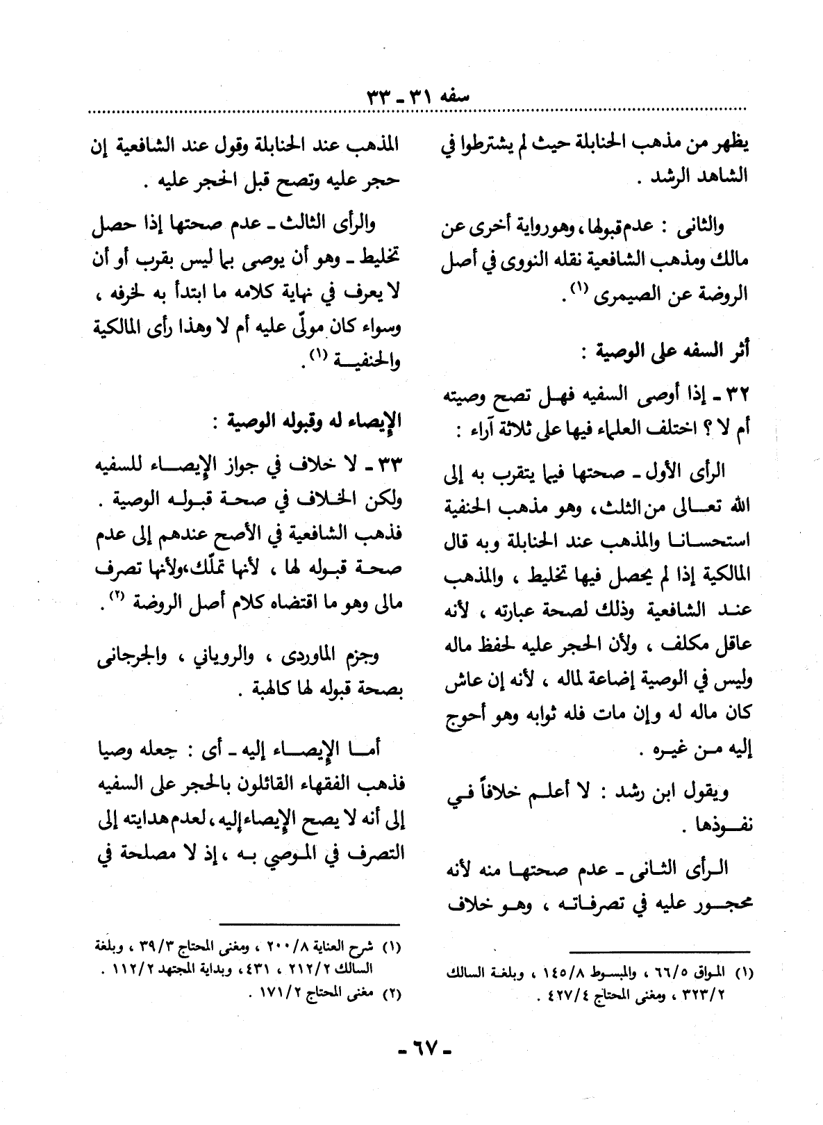 32 - إِذَا أَوْصَى السَّفِيهُ فَهَل تَصِحُّ وَصِيَّتُهُ أَمْ لاَ؟ اخْتَلَفَ الْعُلَمَاءُ فِيهَا عَلَى ثَلاَثَةِ آرَاءٍ: