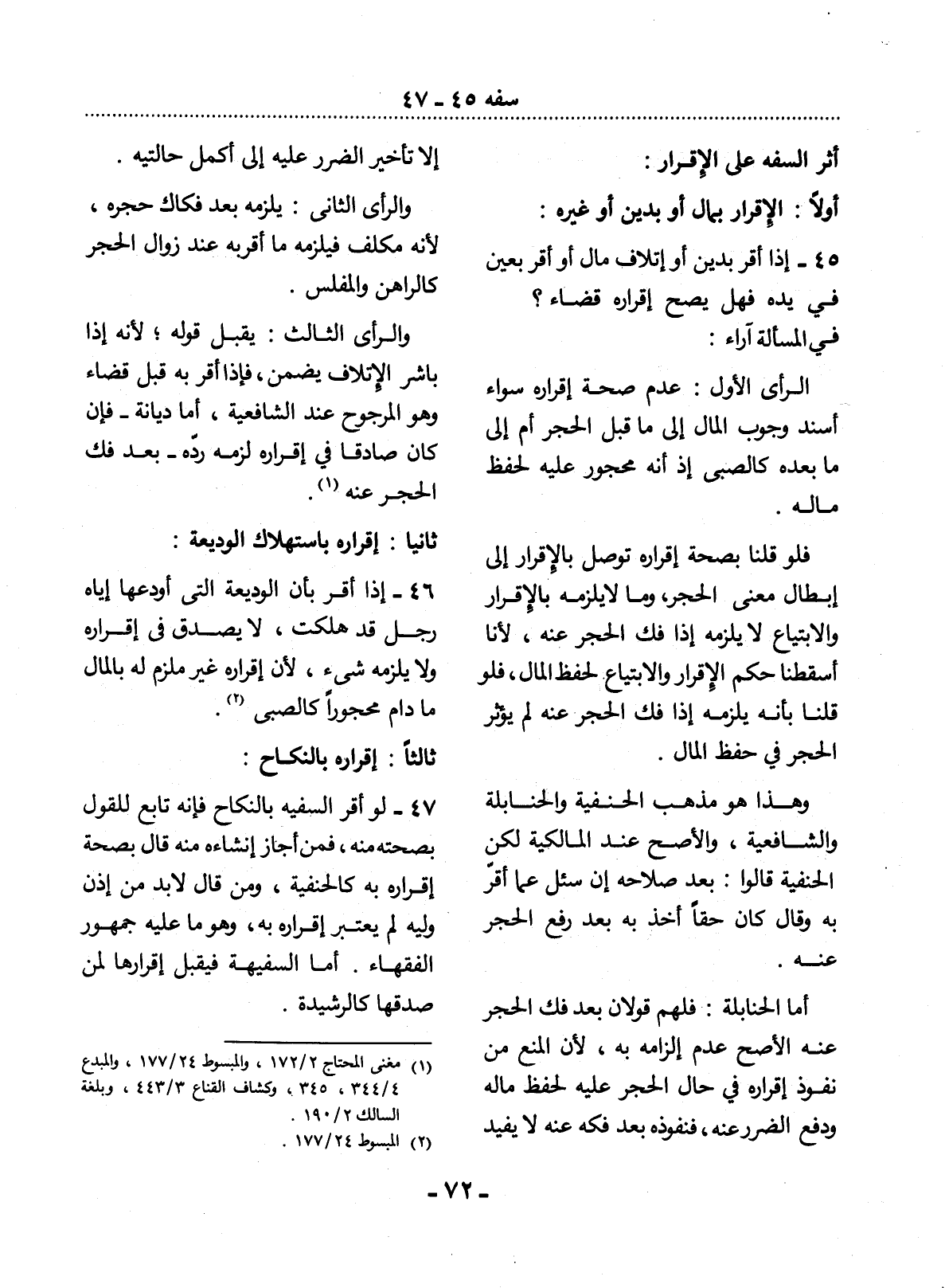 (1) مغني المحتاج 2 / 172، والمبسوط 24 / 177، والمبدع 4 / 344، 345، وكشاف القناع 3 / 443، وبلغة السالك 2 / 190.