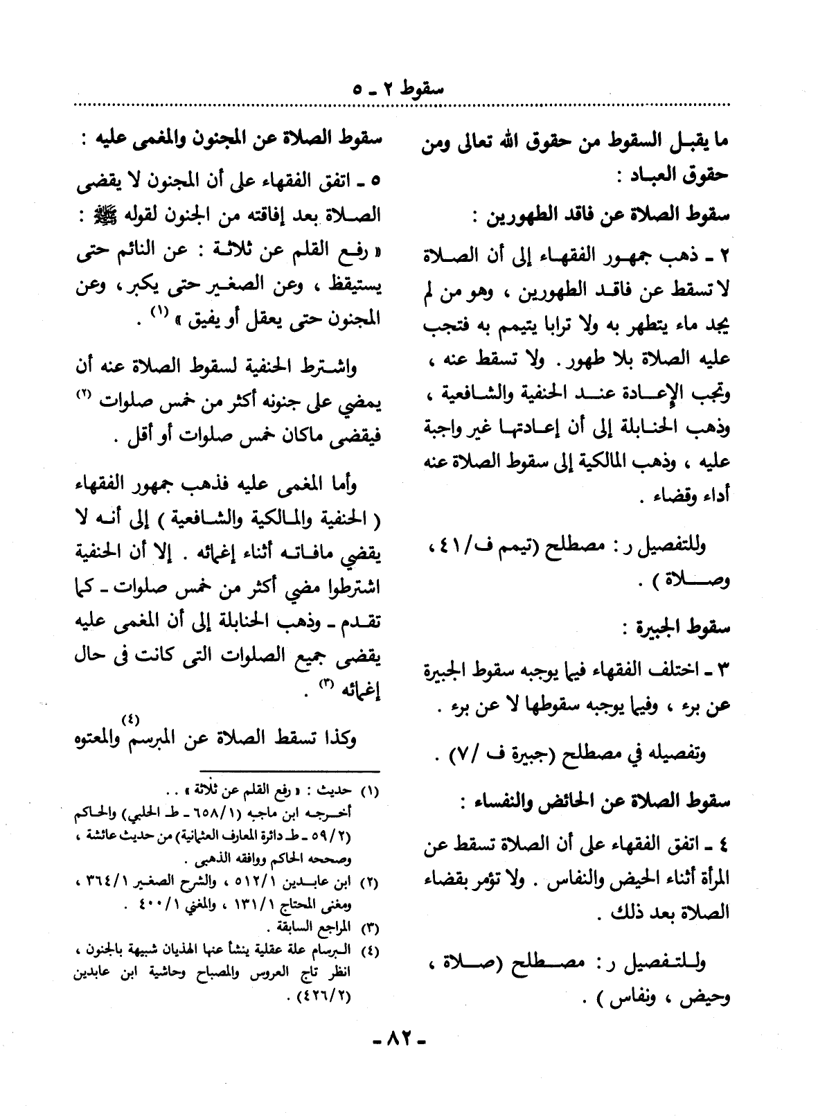سُقُوطُ الصَّلاَةِ عَنِ الْمَجْنُونِ وَالْمُغْمَى عَلَيْهِ: