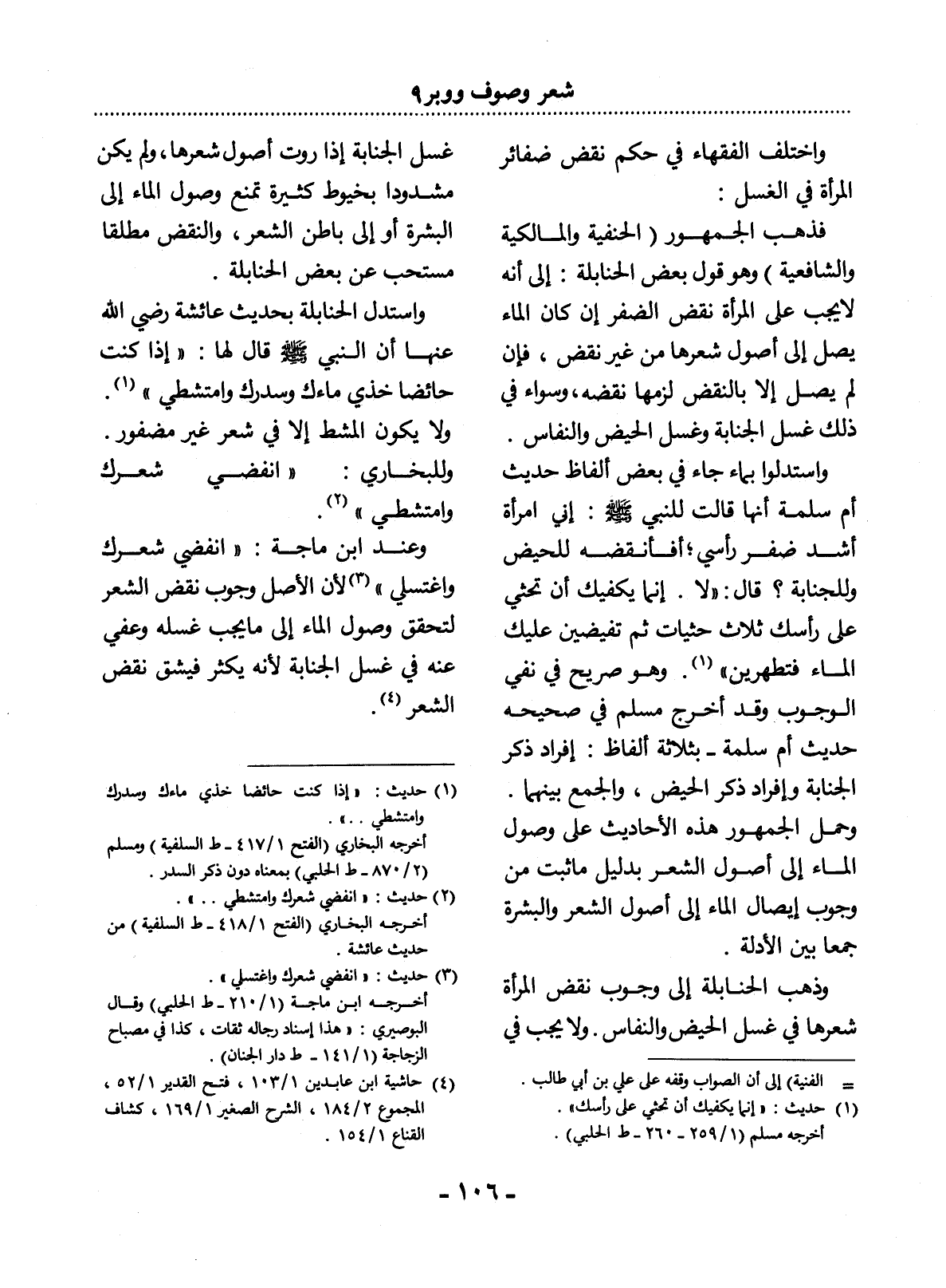 (3) حديث: " انفضي شعرك واغتسلي ". أخرجه ابن ماجه (1 / 210 - ط الحلبي) وقال البوصيري: " هذا إسناد رجاله ثقات، كذا في مصباح الزجاجة " (1 / 141 - ط دار الجنان) .
