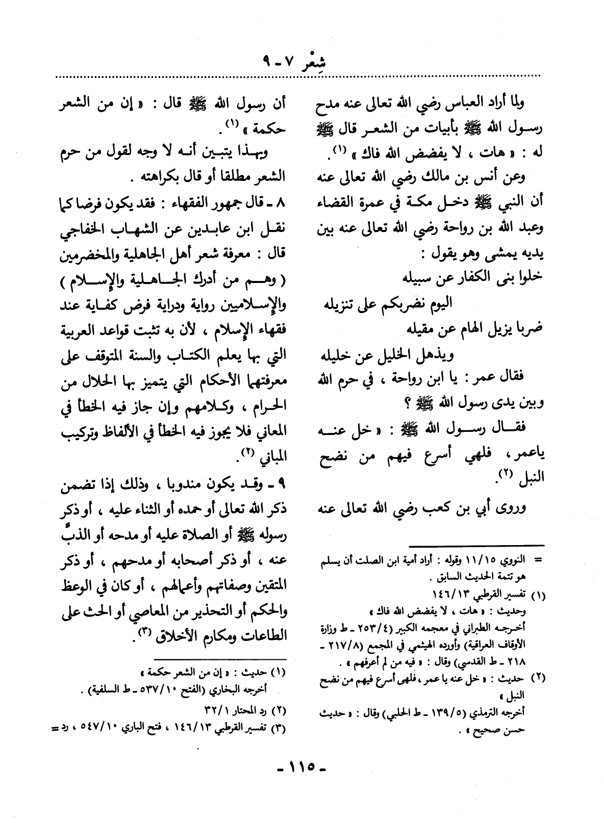 (1) حديث: " إن من الشعر حكمة ". أخرجه البخاري (الفتح 10 / 537 - ط السلفية) .