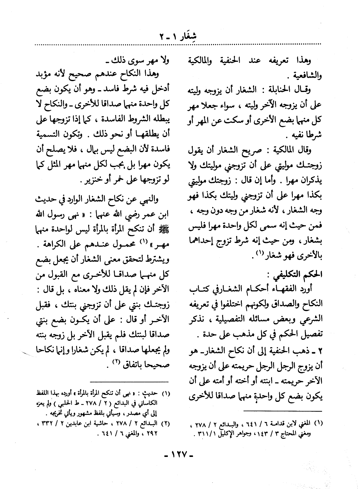 (2) البدائع 2 / 278، حاشية ابن عابدين 2 / 332، 292، والمغني 6 / 641.