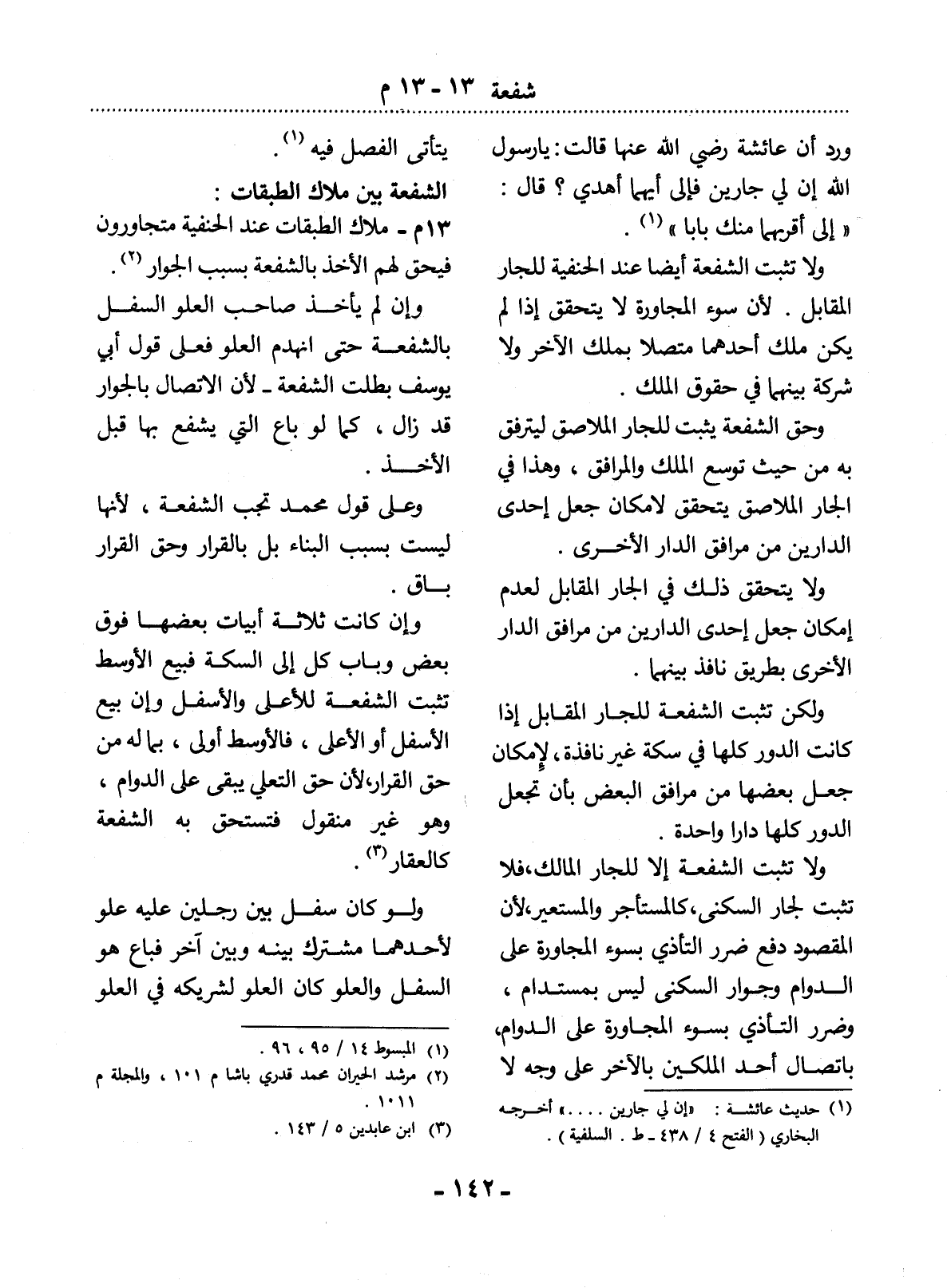 13 م - مُلاَّكُ الطَّبَقَاتِ عِنْدَ الْحَنَفِيَّةِ مُتَجَاوِرُونَ فَيَحِقُّ لَهُمُ الأَْخْذُ بِالشُّفْعَةِ بِسَبَبِ الْجِوَارِ (2) .