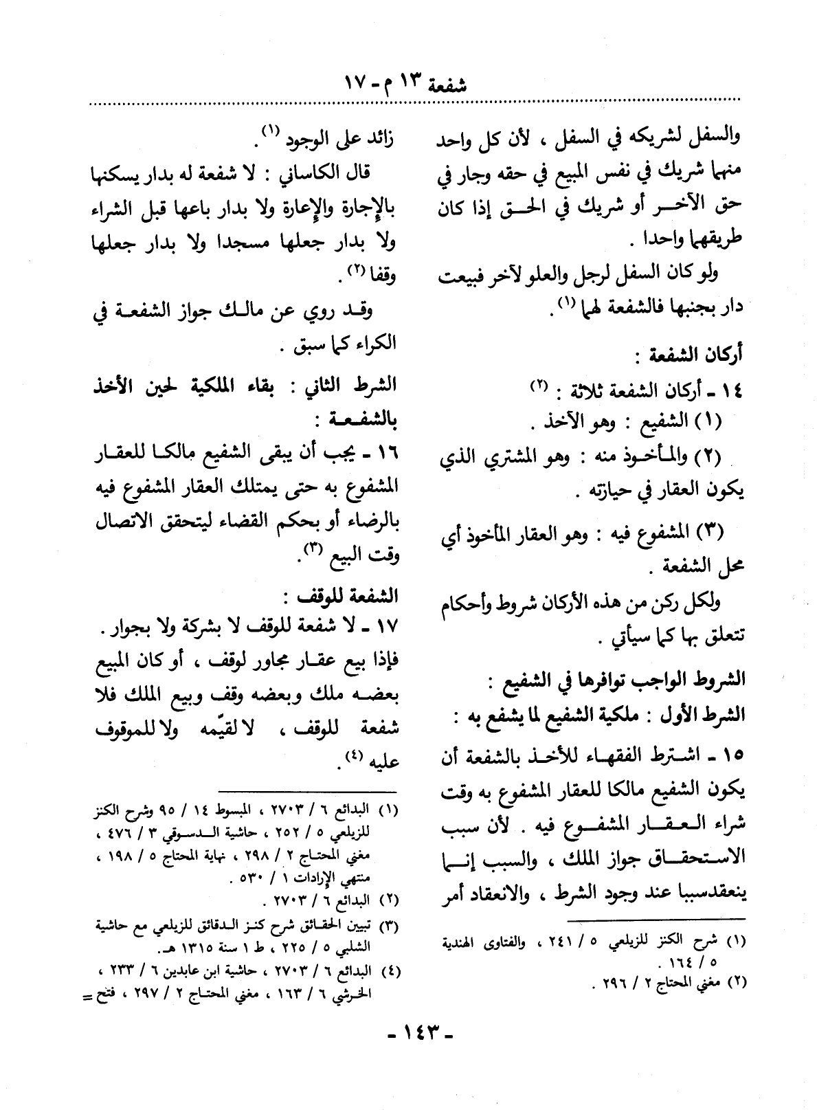17 - لاَ شُفْعَةَ لِلْوَقْفِ لاَ بِشَرِكَةٍ وَلاَ بِجِوَارٍ.