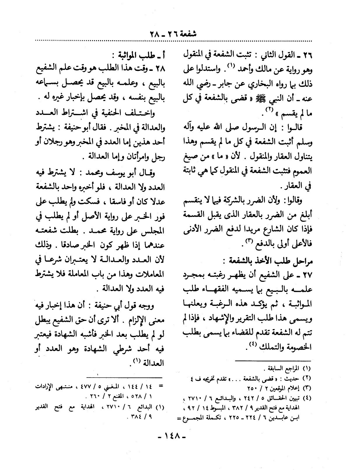 27 - عَلَى الشَّفِيعِ أَنْ يُظْهِرَ رَغْبَتَهُ بِمُجَرَّدِ عِلْمِهِ بِالْبَيْعِ بِمَا يُسَمِّيهِ الْفُقَهَاءُ طَلَبَ الْمُوَاثَبَةِ، ثُمَّ يُؤَكِّدَ هَذِهِ الرَّغْبَةَ وَيُعْلِنَهَا وَيُسَمَّى هَذَا طَلَبَ التَّقْرِيرِ وَالإِْشْهَادِ، فَإِذَا لَمْ تَتِمَّ لَهُ الشُّفْعَةُ تَقَدَّمَ لِلْقَضَاءِ بِمَا يُسَمَّى بِطَلَبِ الْخُصُومَةِ وَالتَّمَلُّكِ (4) .