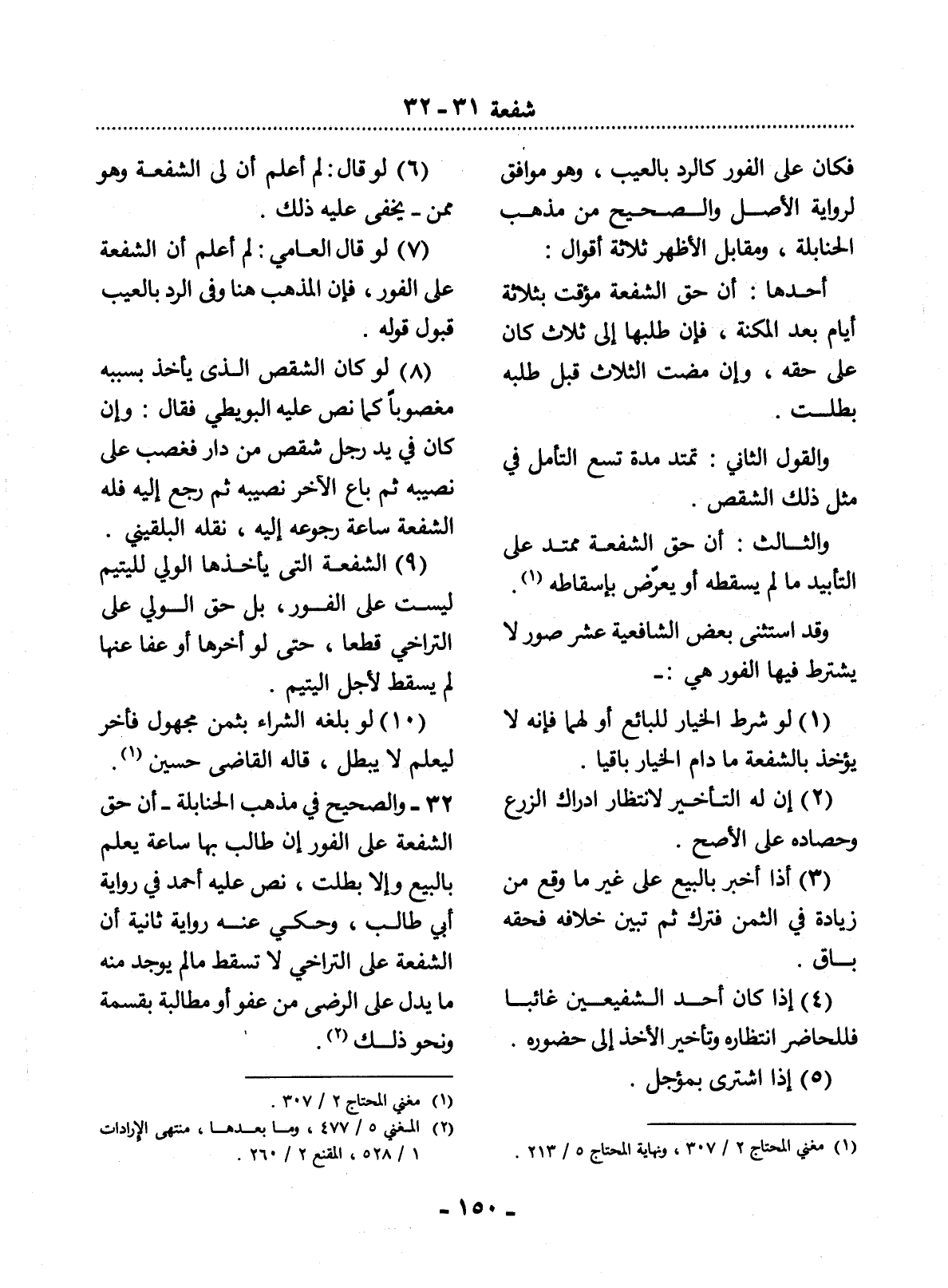 32 - وَالصَّحِيحُ فِي مَذْهَبِ الْحَنَابِلَةِ - أَنَّ حَقَّ الشُّفْعَةِ عَلَى الْفَوْرِ إِنْ طَالَبَ بِهَا سَاعَةَ يَعْلَمُ بِالْبَيْعِ وَإِلاَّ بَطَلَتْ، نَصَّ عَلَيْهِ أَحْمَدُ فِي رِوَايَةِ أَبِي طَالِبٍ، وَحُكِيَ عَنْهُ رِوَايَةٌ ثَانِيَةٌ أَنَّ الشُّفْعَةَ عَلَى التَّرَاخِي لاَ تَسْقُطُ مَا لَمْ يُوجَدْ مِنْهُ مَا يَدُل عَلَى الرِّضَى مِنْ عَفْوٍ أَوْ مُطَالَبَةٍ بِقِسْمَةٍ وَنَحْوِ ذَلِكَ (2) .