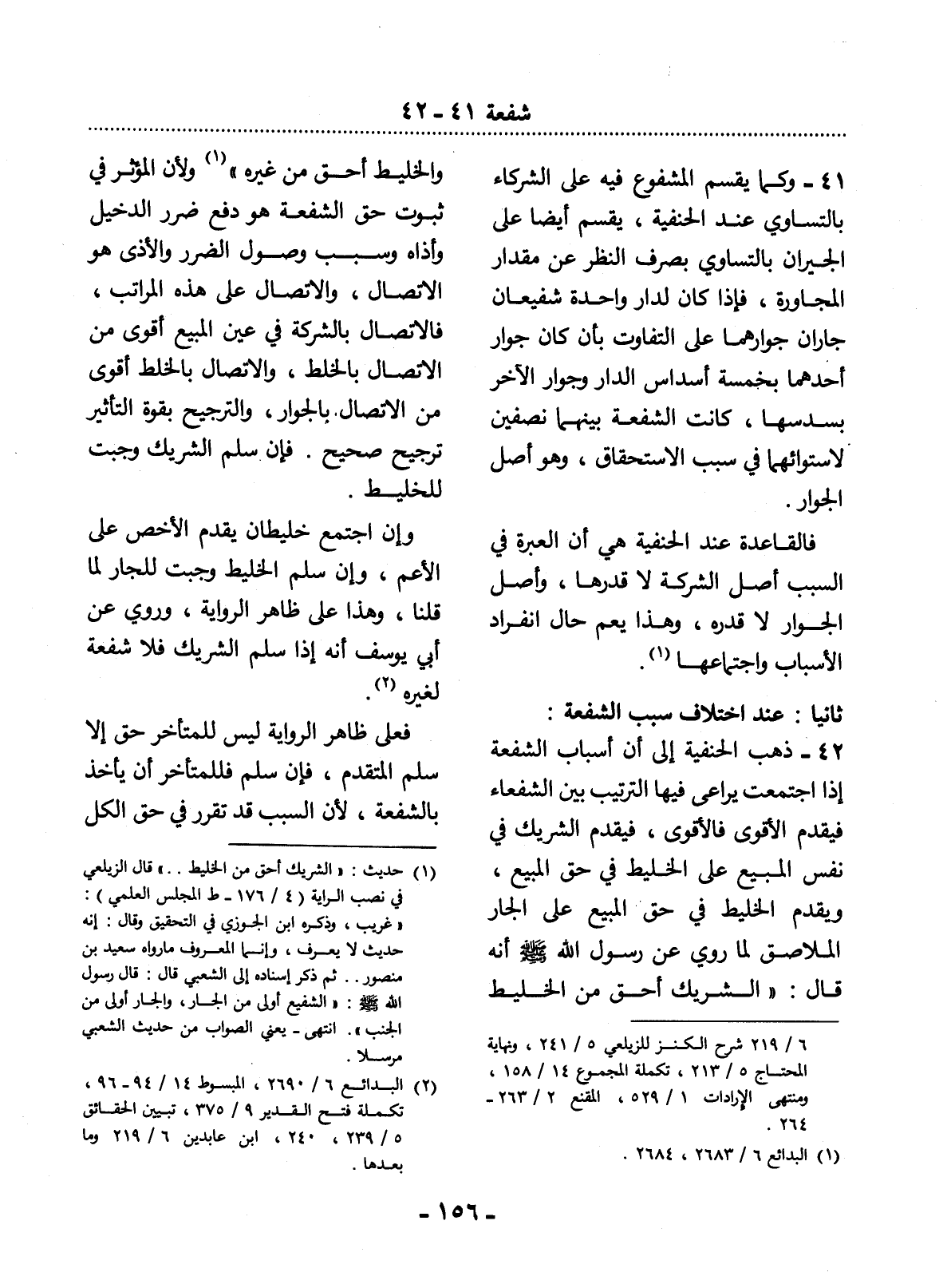 42 - ذَهَبَ الْحَنَفِيَّةُ إِلَى أَنَّ أَسْبَابَ الشُّفْعَةِ إِذَا اجْتَمَعَتْ يُرَاعَى فِيهَا التَّرْتِيبُ بَيْنَ الشُّفَعَاءِ فَيُقَدَّمُ الأَْقْوَى فَالأَْقْوَى، فَيُقَدَّمُ الشَّرِيكُ فِي نَفْسِ الْمَبِيعِ عَلَى الْخَلِيطِ فِي حَقِّ الْمَبِيعِ، وَيُقَدَّمُ الْخَلِيطُ فِي حَقِّ الْمَبِيعِ عَلَى الْجَارِ الْمُلاَصِقِ لِمَا رُوِيَ عَنْ رَسُول اللَّهِ صَلَّى اللَّهُ عَلَيْهِ وَسَلَّمَ أَنَّهُ قَال: الشَّرِيكُ أَحَقُّ مِنَ الْخَلِيطِ