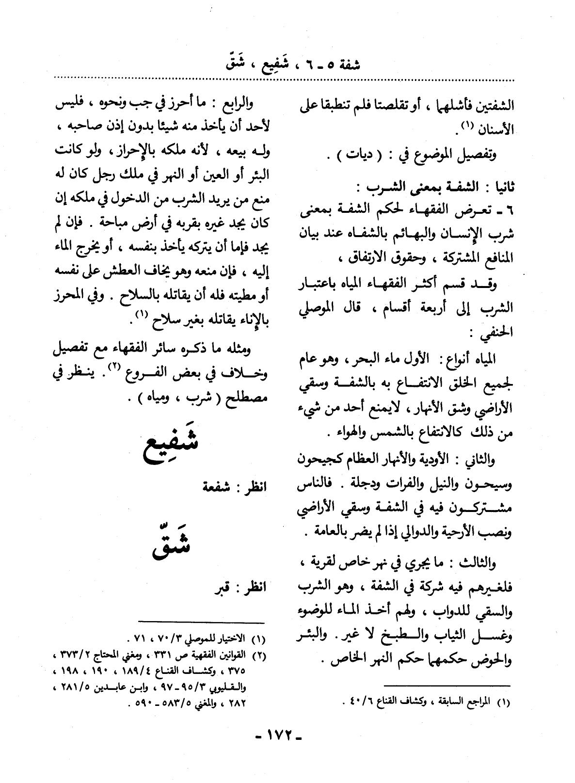 وَمِثْلُهُ مَا ذَكَرَهُ سَائِرُ الْفُقَهَاءِ مَعَ تَفْصِيلٍ وَخِلاَفٍ فِي بَعْضِ الْفُرُوعِ (2) . يُنْظَرُ فِي مُصْطَلَحِ (شِرْبٌ، وَمِيَاهٌ) .