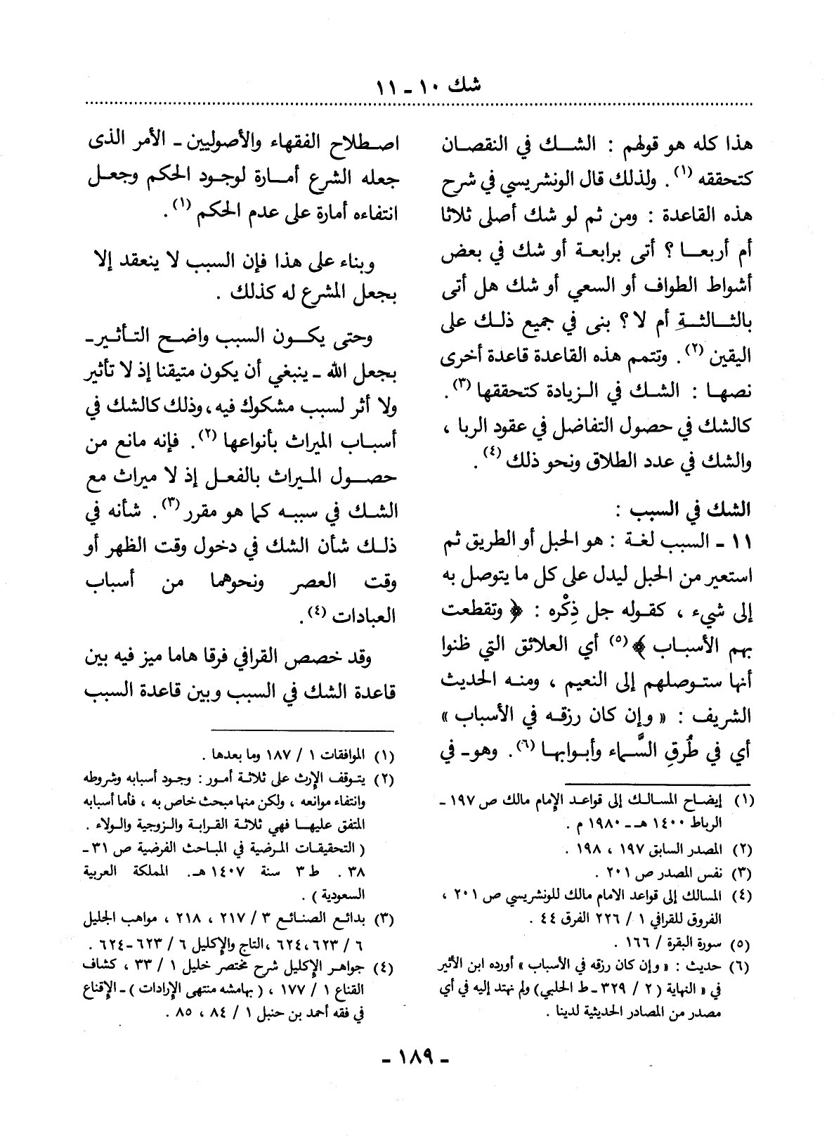 (4) المسالك إلى قواعد الإمام مالك للونشريسي ص 201، الفروق للقرافي 1 / 226 الفرق 44.
