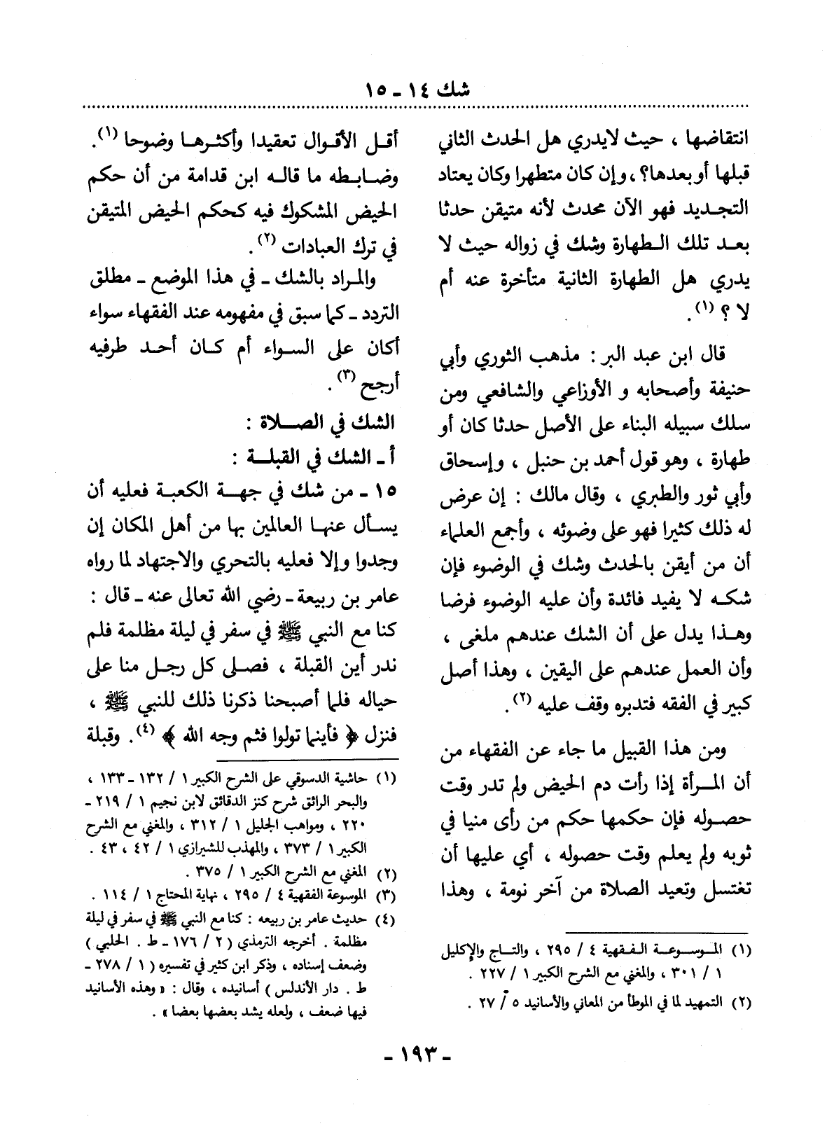 (1) حاشية الدسوقي على الشرح الكبير 1 / 132 - 133، والبحر الرائق شرح كنز الدقائق لابن نجيم 1 / 219 - 220، ومواهب الجليل 1 / 312، والمغني مع الشرح الكبير 1 / 373، والمهذب للشيرازي 1 / 42، 43.