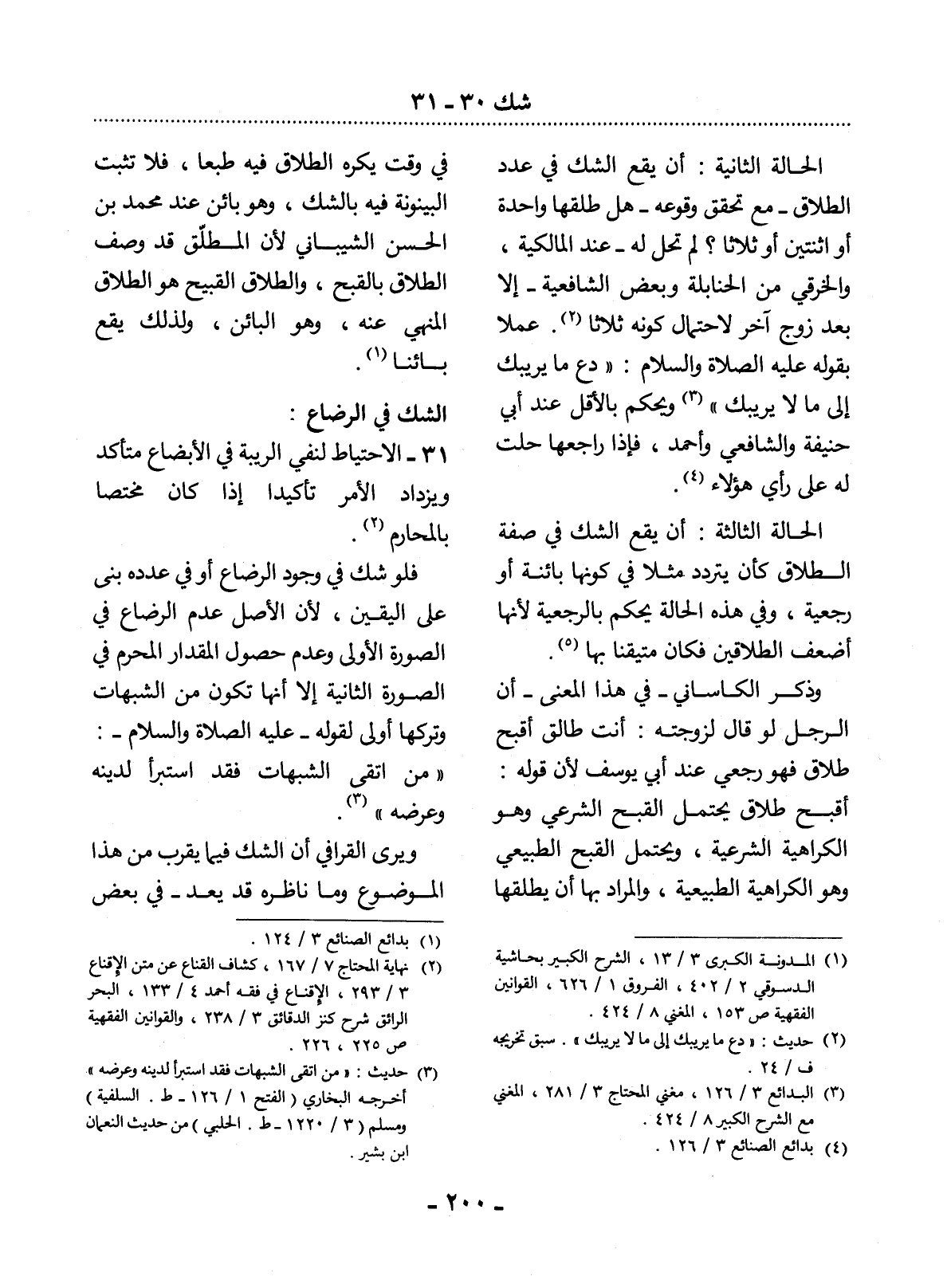 (1) المدونة الكبرى 3 / 13، الشرح الكبير بحاشية الدسوقي 2 / 402، الفروق 1 / 626، القوانين الفقهية ص 153، المغني 8 / 424.