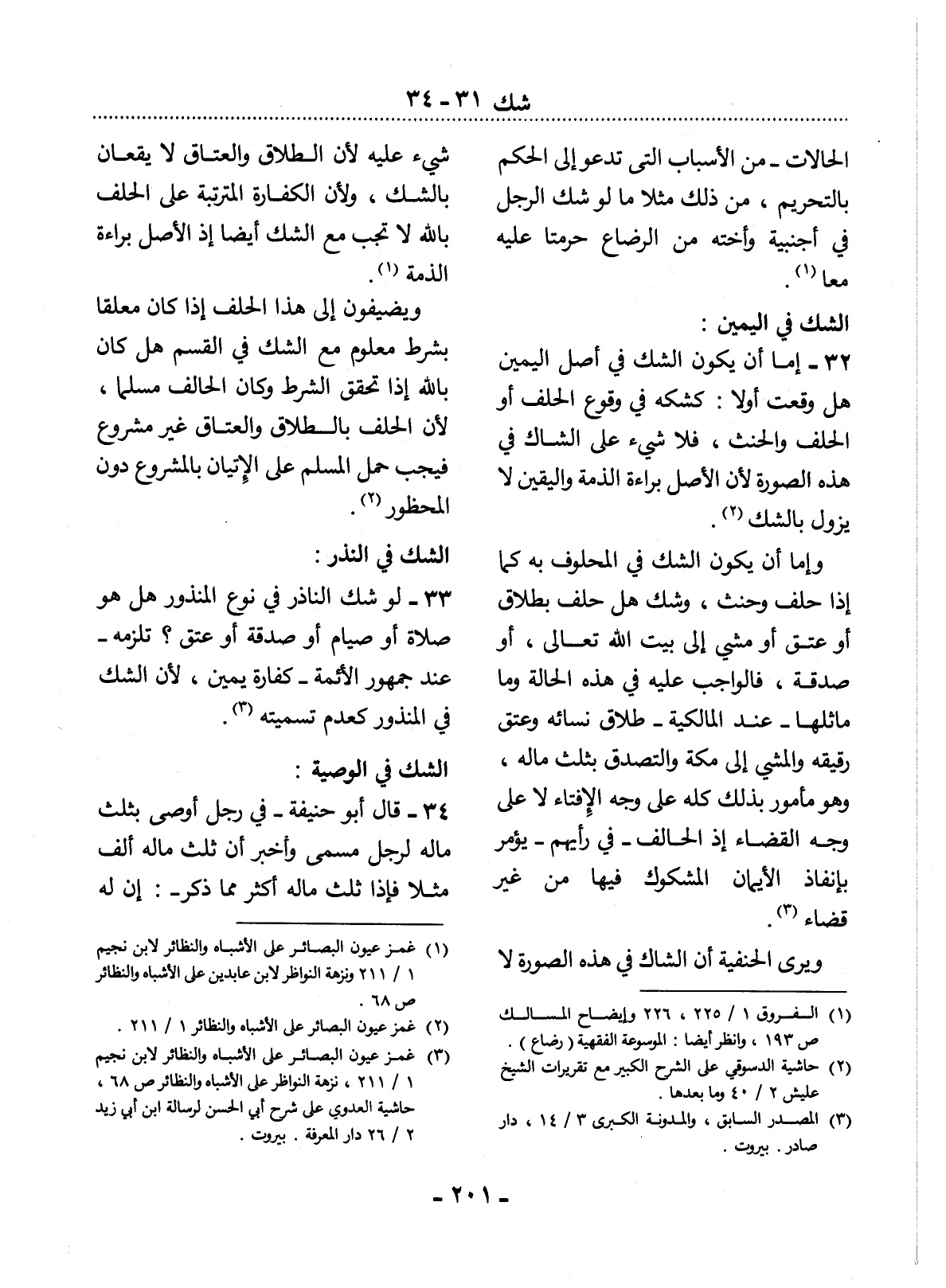(3) غمز عيون البصائر على الأشباه والنظائر لابن نجيم 1 / 211، نزهة النواظر على الأشباه والنظائر ص 68، حاشية العدوي على شرح أبي الحسن لرسالة ابن أبي زيد 2 / 26 دار المعرفة. بيروت.