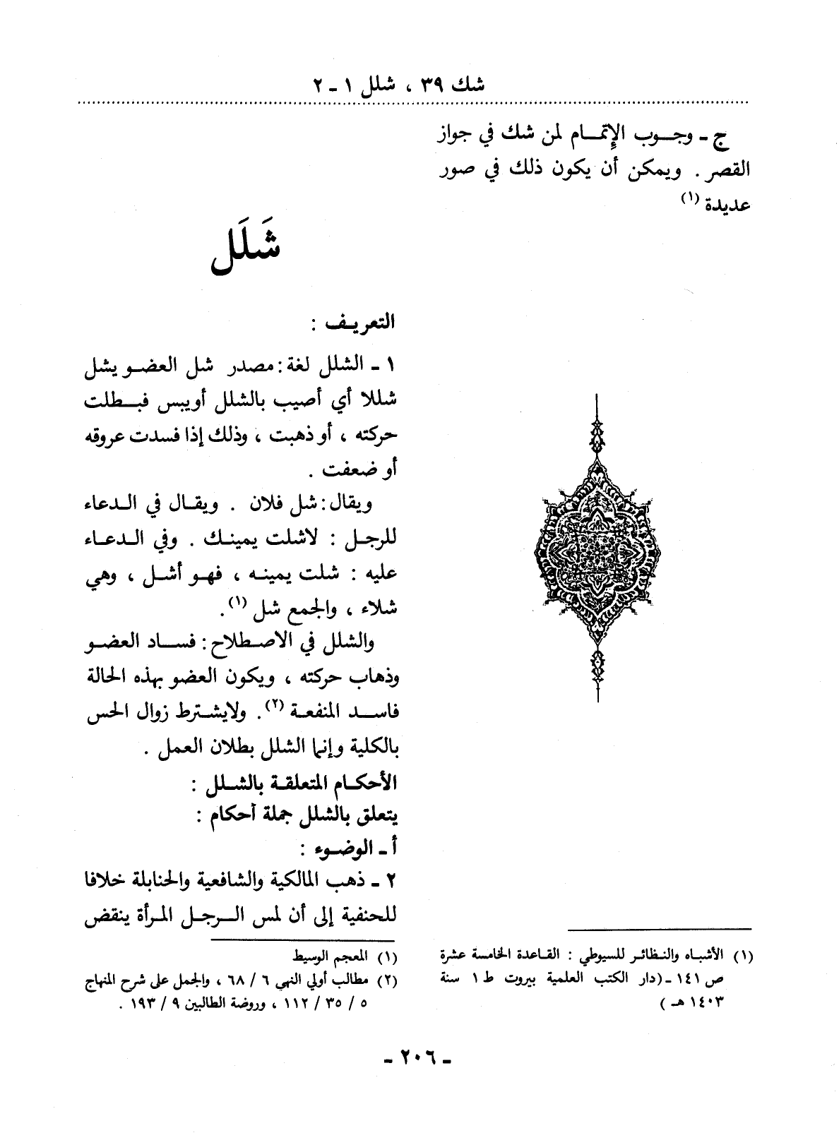 يَتَعَلَّقُ بِالشَّلَل جُمْلَةُ أَحْكَامٍ: