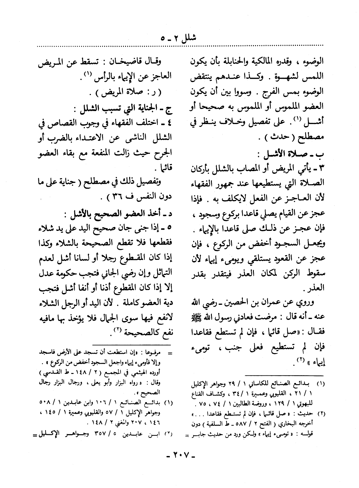 ج - الْجِنَايَةُ الَّتِي تُسَبِّبُ الشَّلَل: