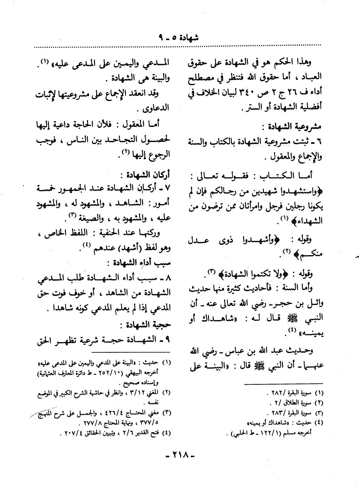 9 - الشَّهَادَةُ حُجَّةٌ شَرْعِيَّةٌ تُظْهِرُ الْحَقَّ