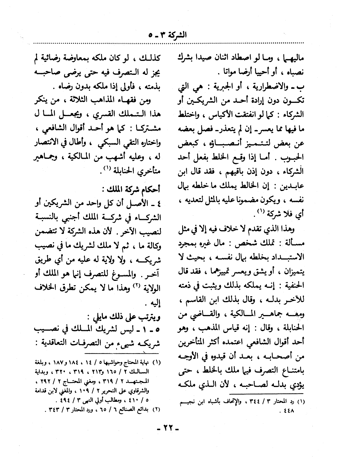5 - 1 - لَيْسَ لِشَرِيكِ الْمِلْكِ فِي نَصِيبِ شَرِيكِهِ شَيْءٌ مِنَ التَّصَرُّفَاتِ التَّعَاقُدِيَّةِ: